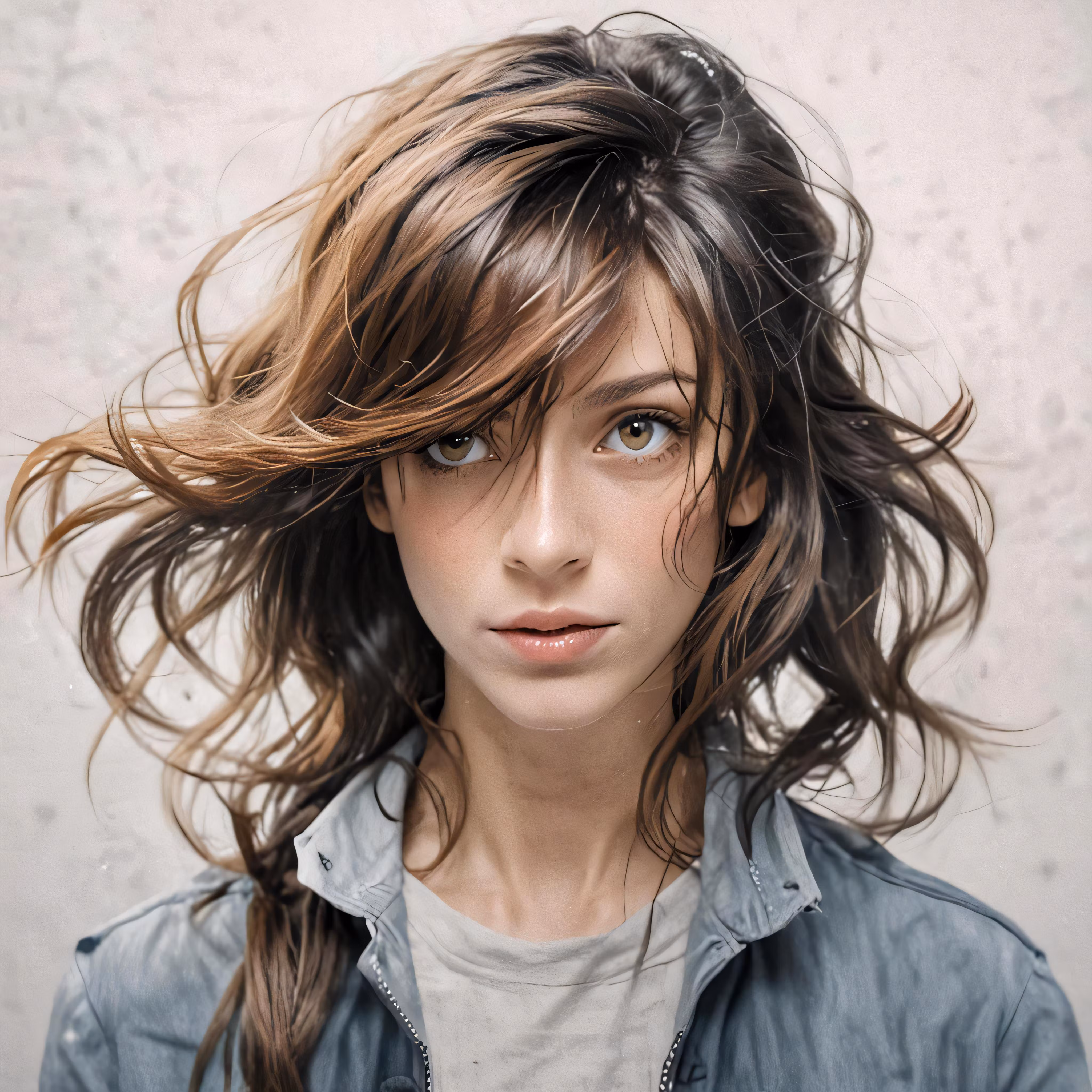 High resolution picture, free to use, a woman with long hair and gray shirt