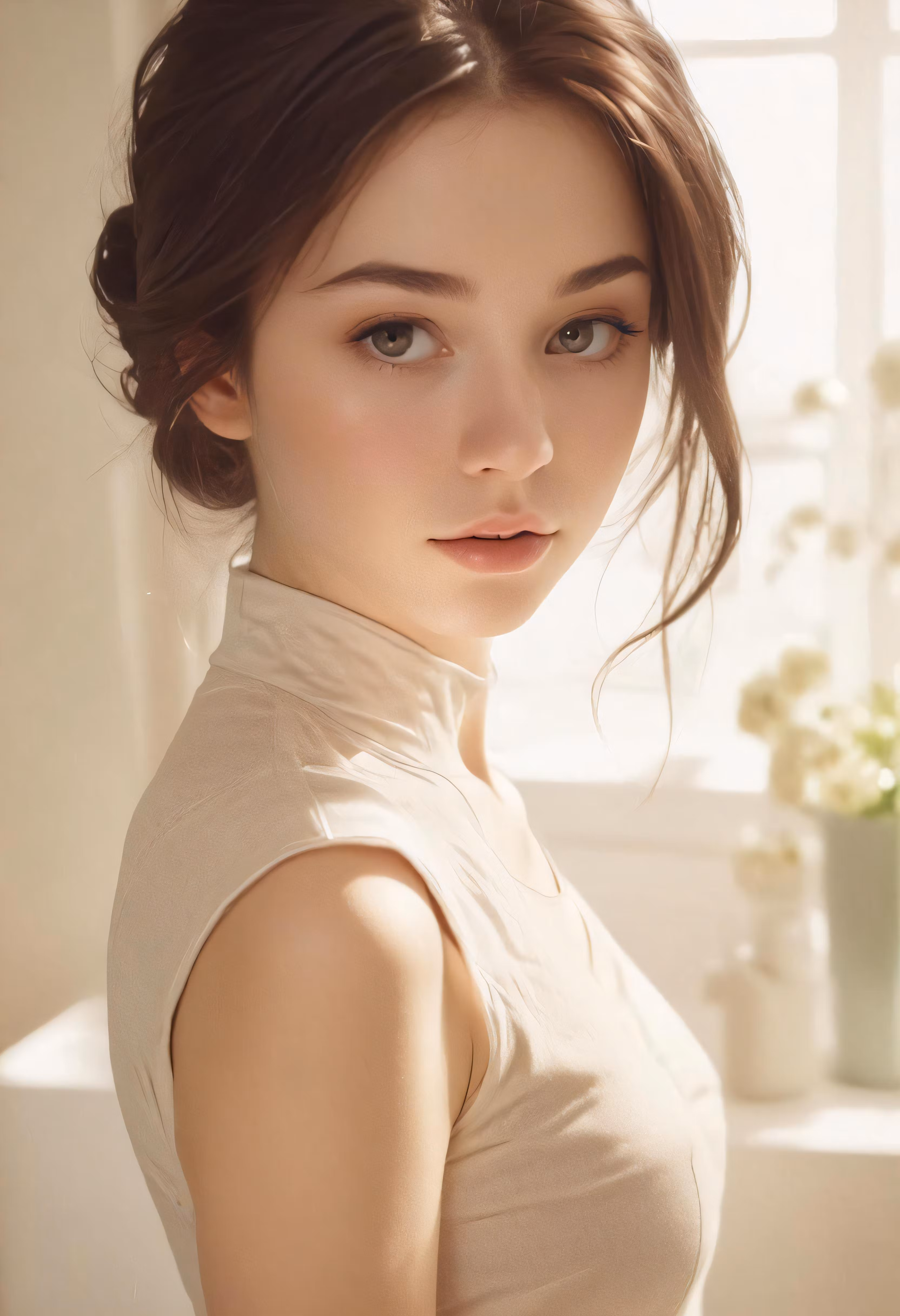 High resolution picture, free to use, a woman with long hair wearing a white top