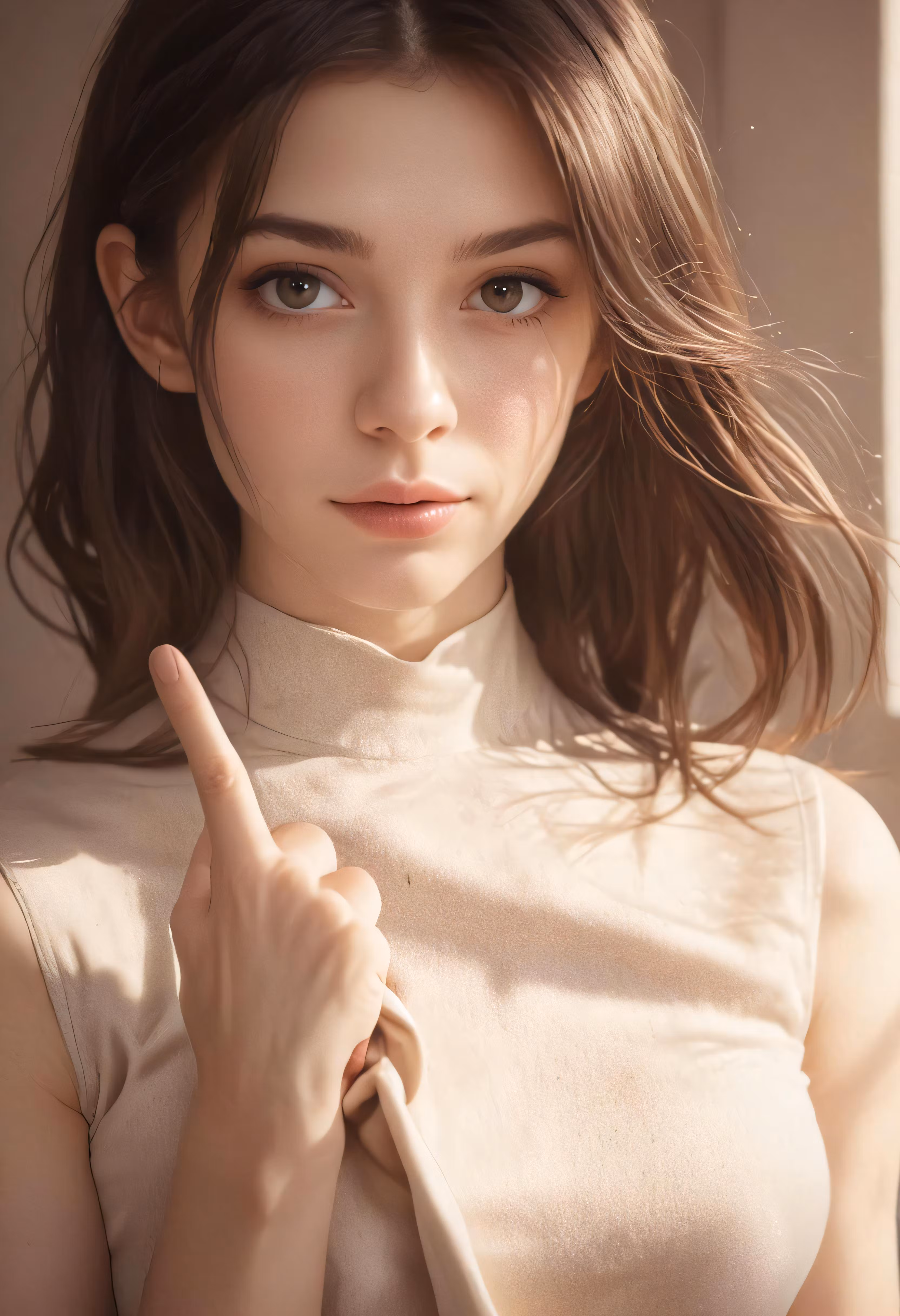 High resolution picture, free to use, a woman with shoulder length sleeves giving a peace sign