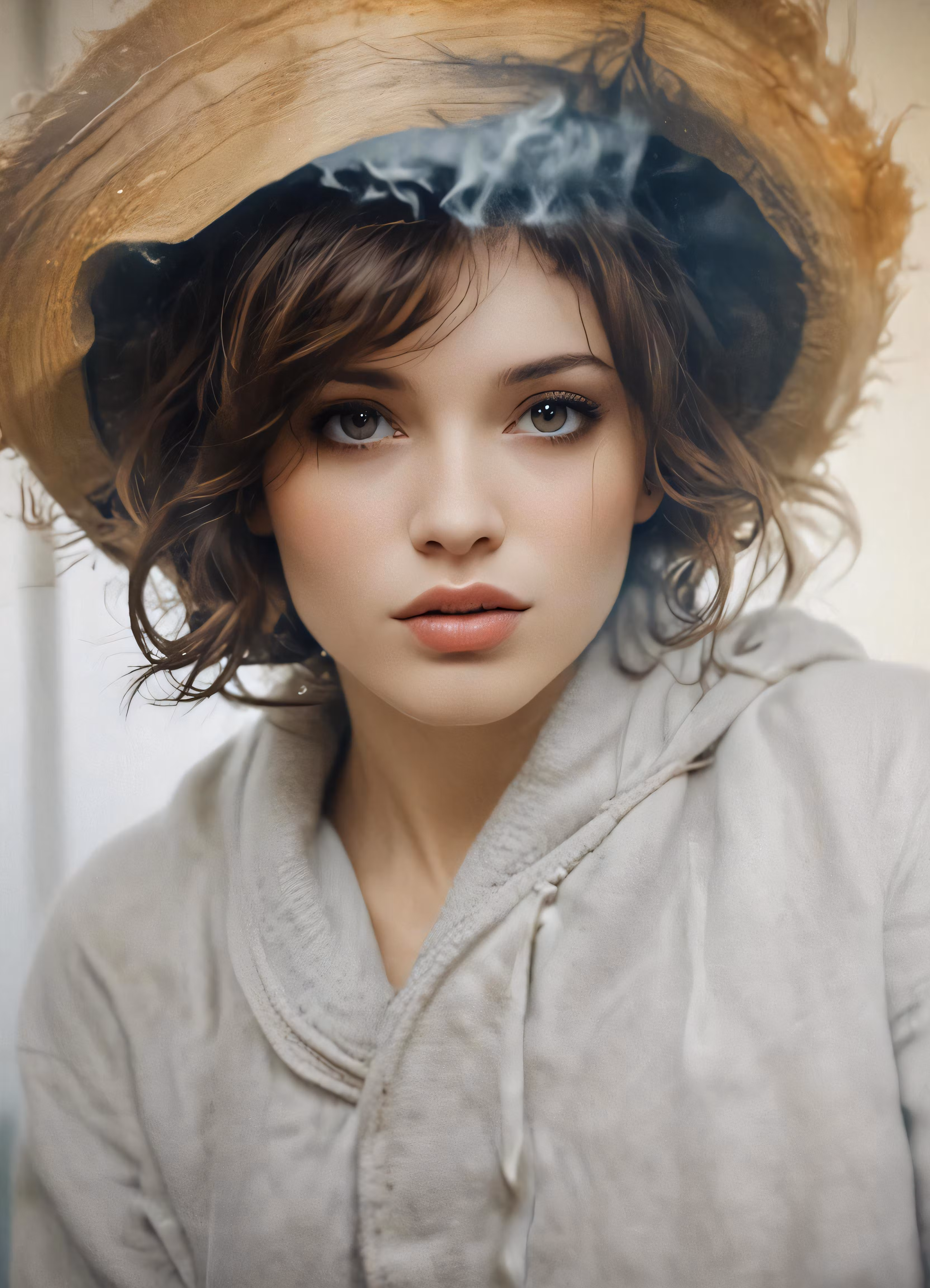 High resolution picture, free to use, a woman with smoky blue eyes and wearing a hat