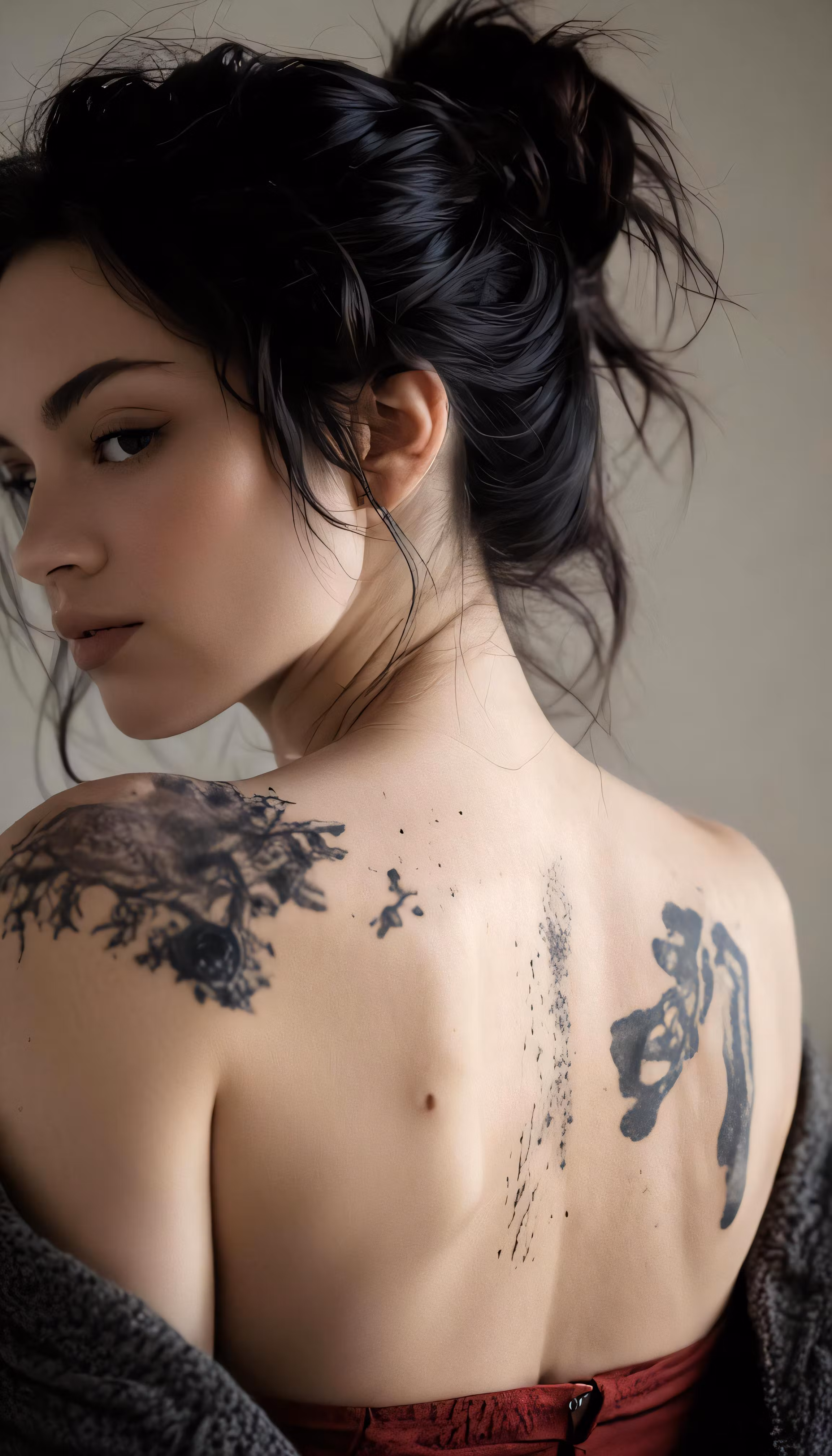 High resolution picture, free to use, a woman with very large tattoos on her back
