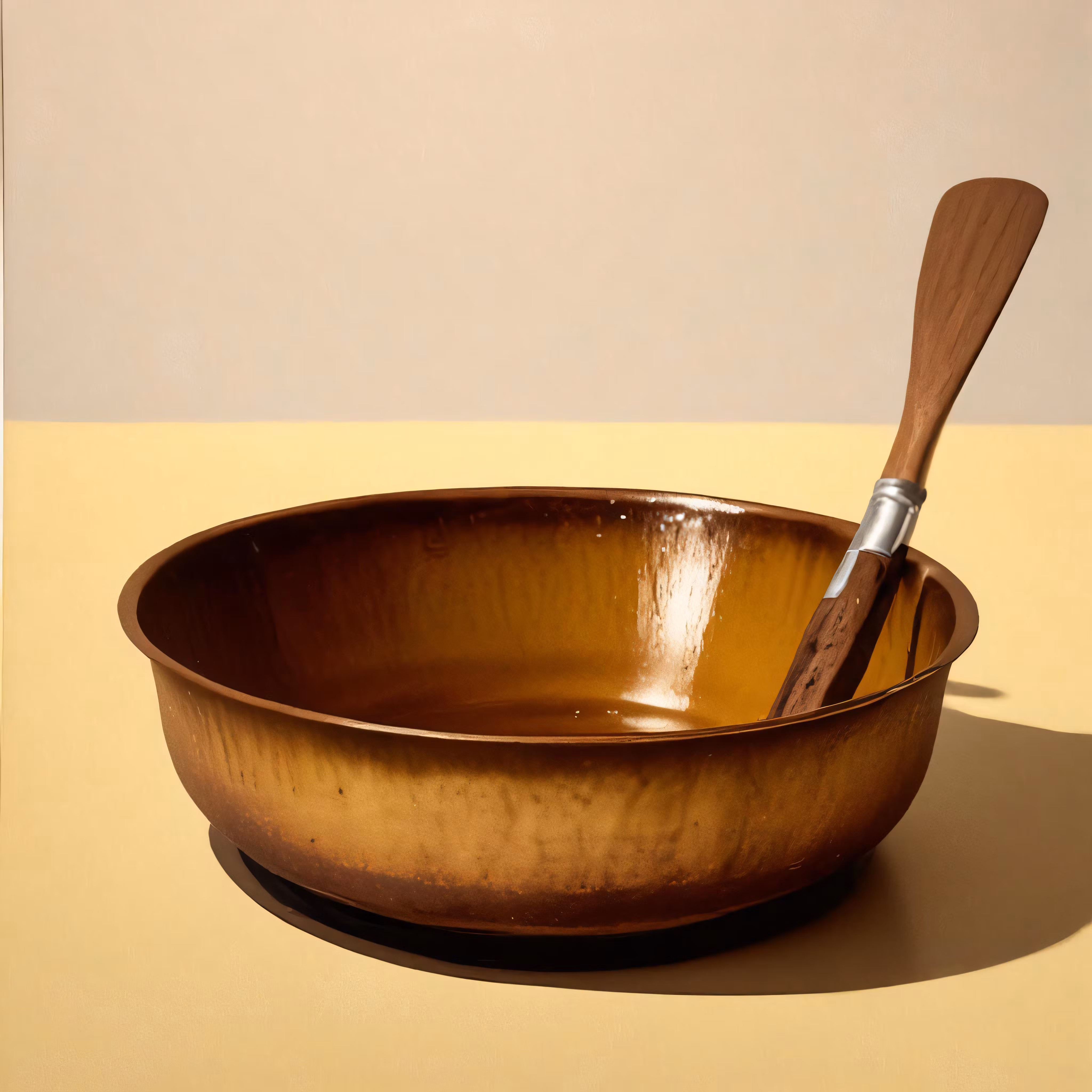 High resolution picture, free to use, a wooden bowl and wooden spoon sitting on a table
