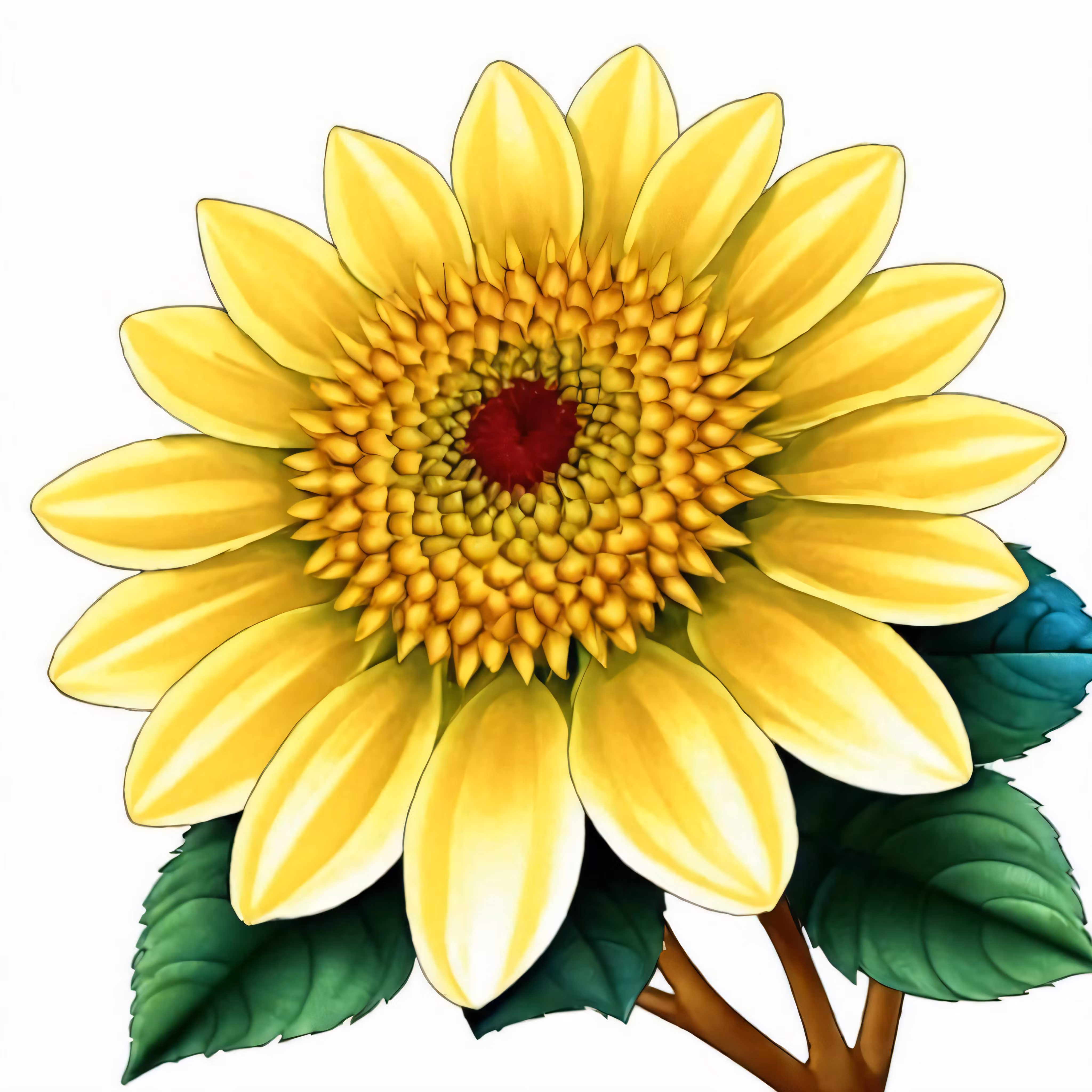 High resolution picture, free to use, a yellow sunflower with green leaves