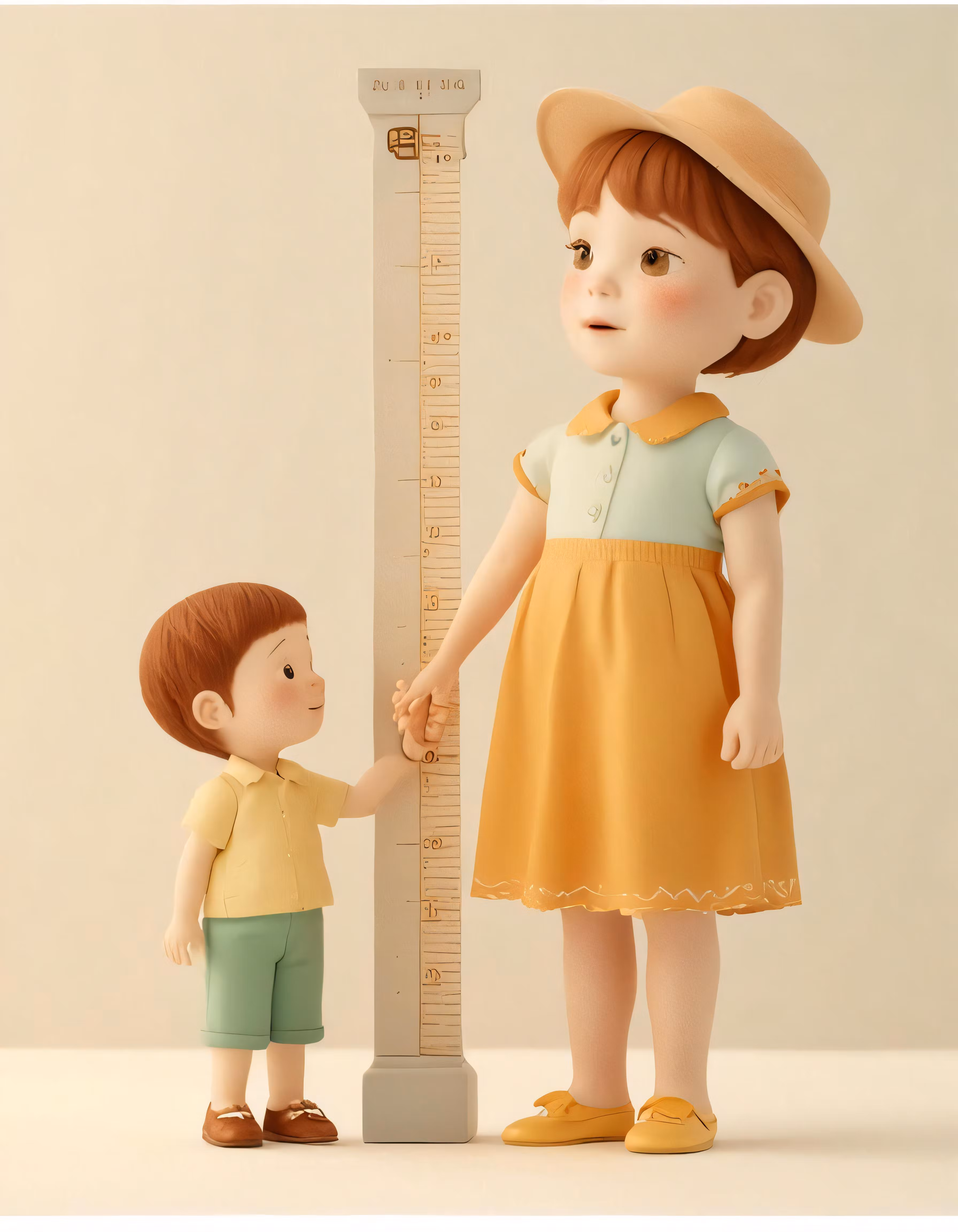 High resolution picture, free to use, a young boy and girl are touching the height scale