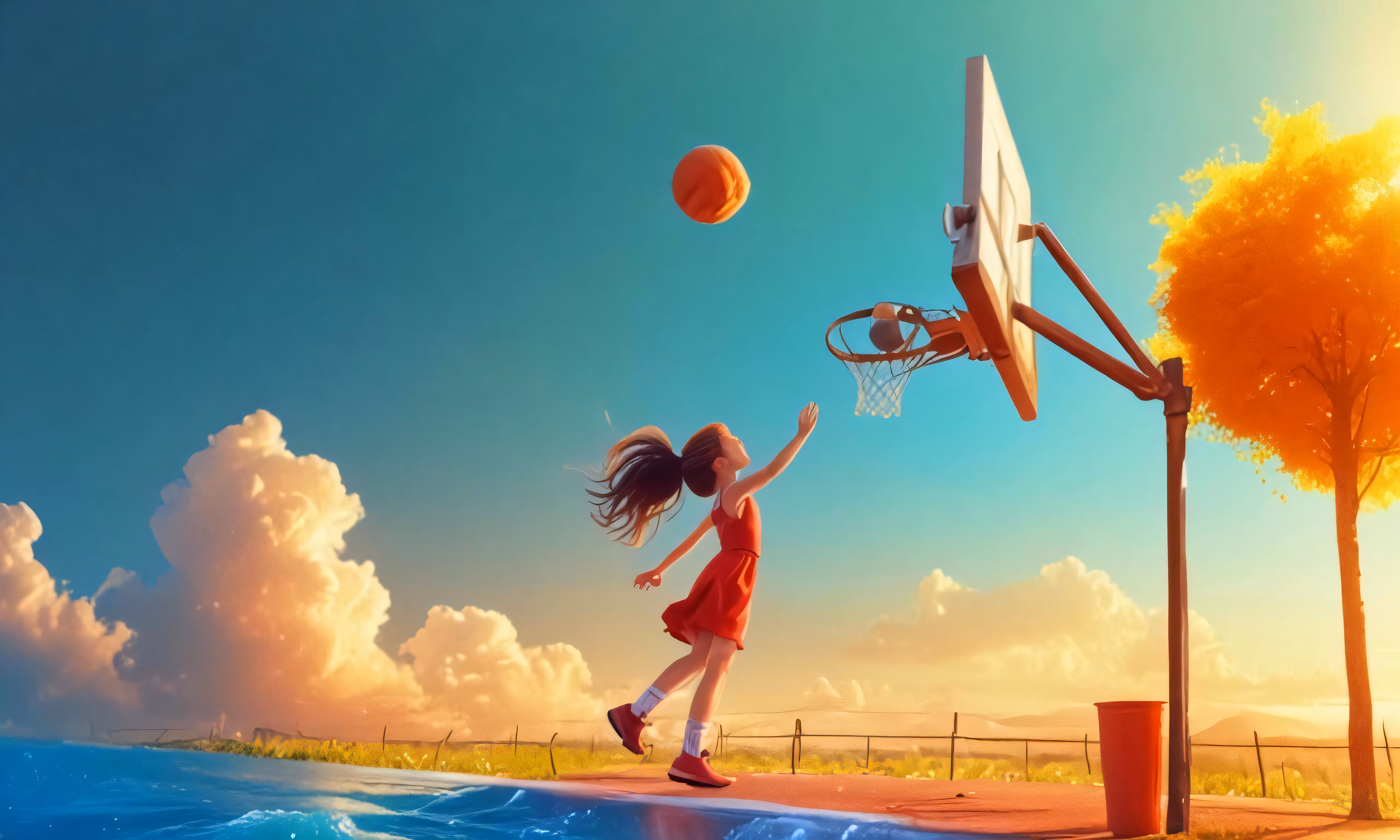 High resolution picture, free to use, a young girl dunking a basketball into the basket