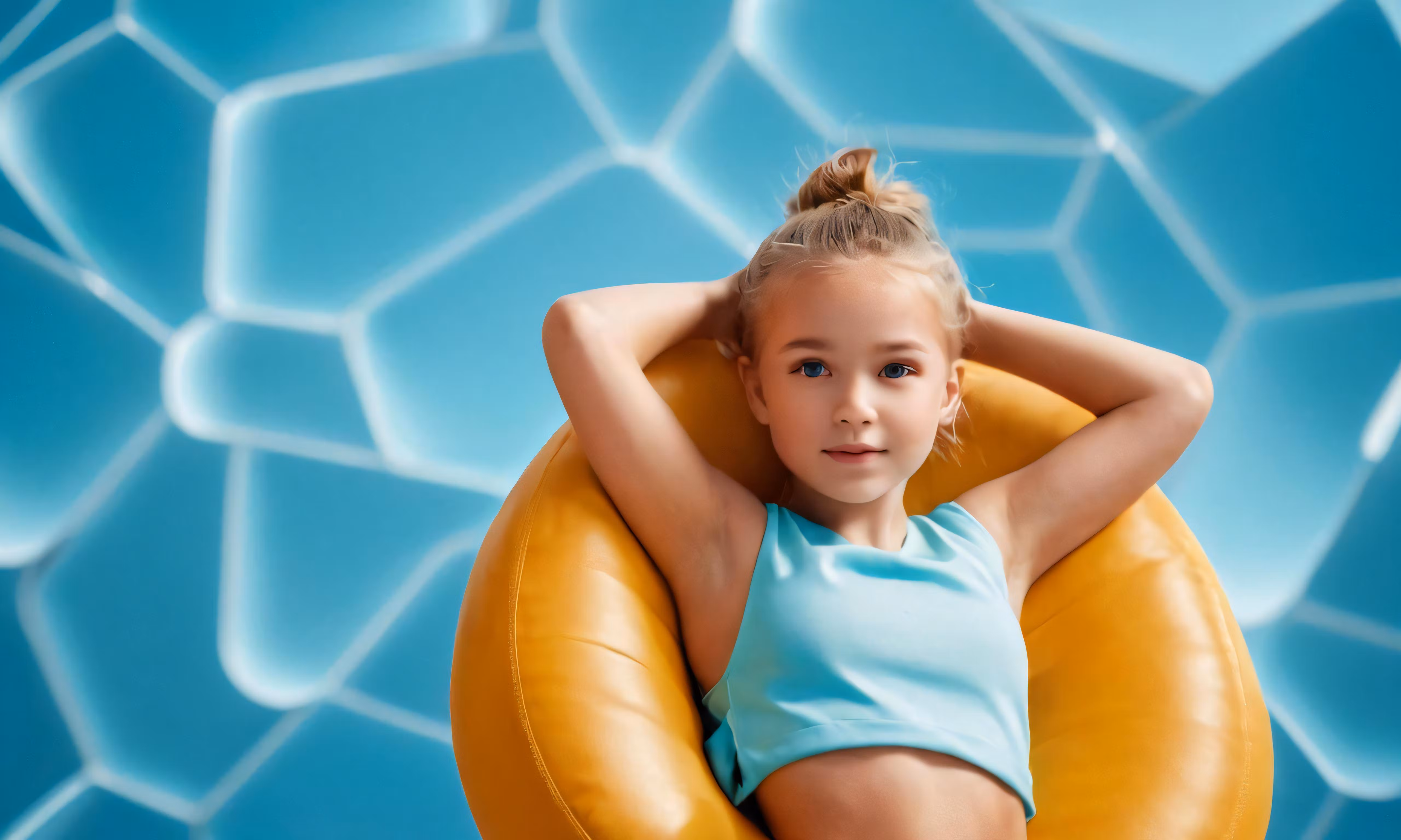 High resolution picture, free to use, a young girl in an inflatable swimming ring