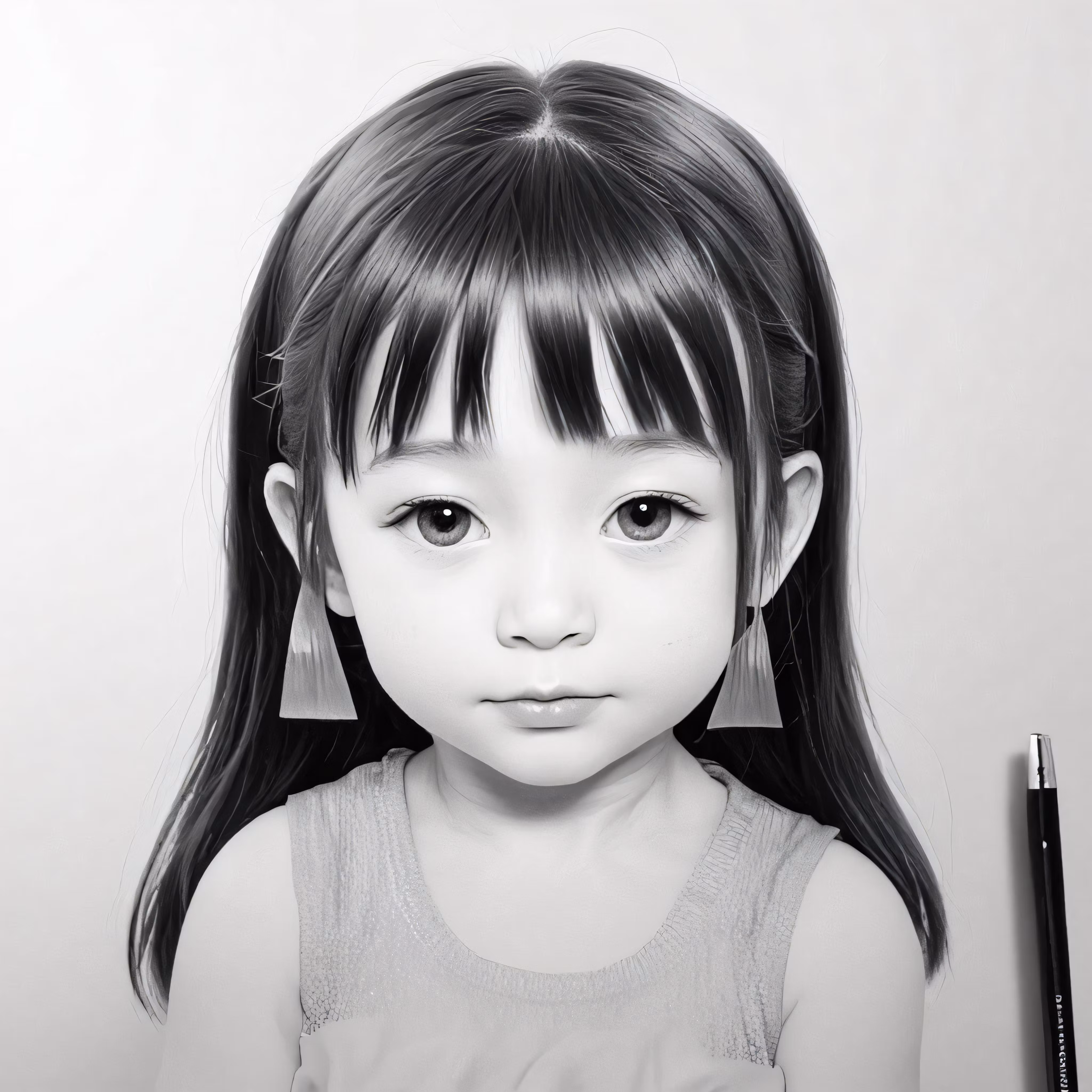 High resolution picture, free to use, a young girl poses for a photograph while holding a pen in front of her