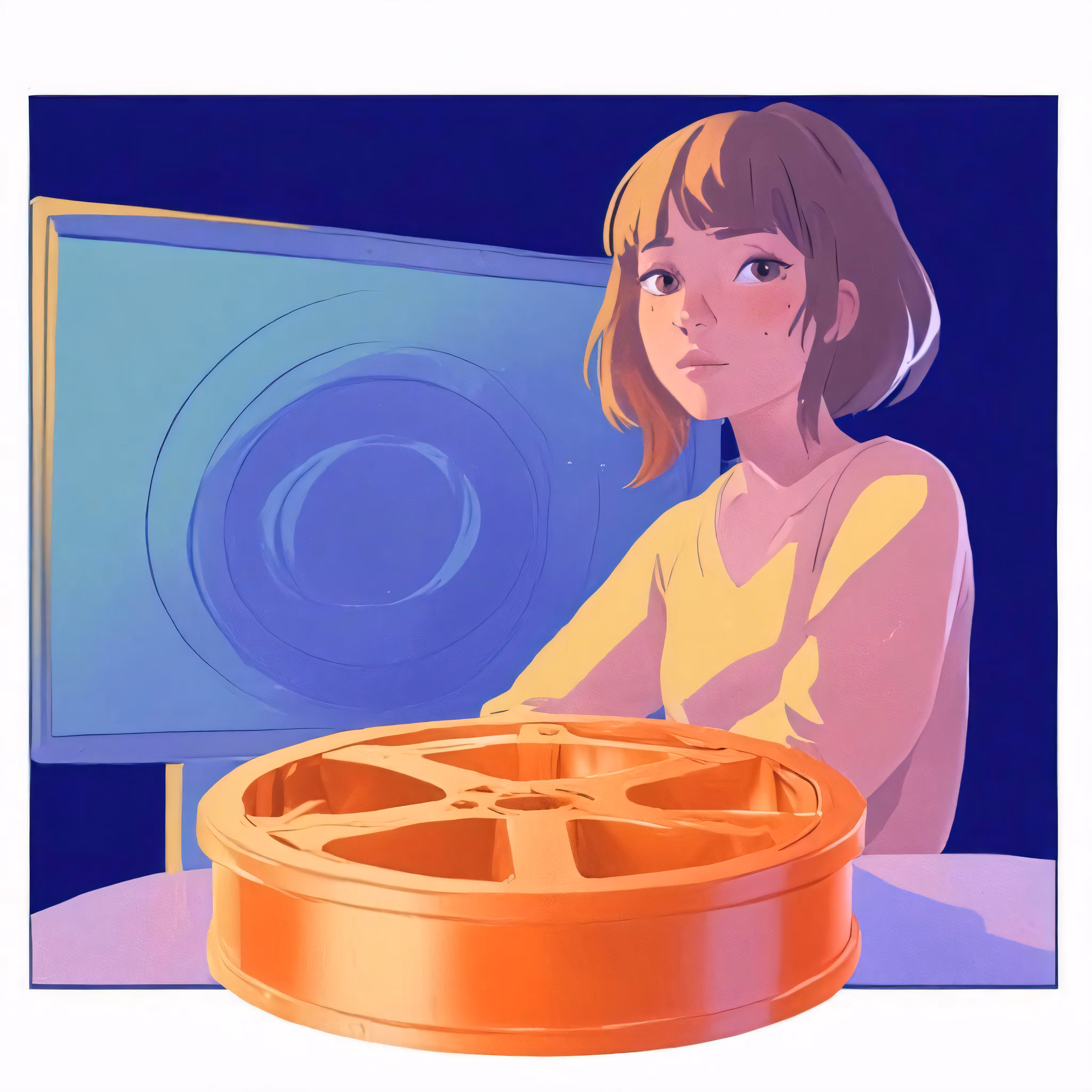 High resolution picture, free to use, a young girl sitting at a table with some type of orange object in front of her