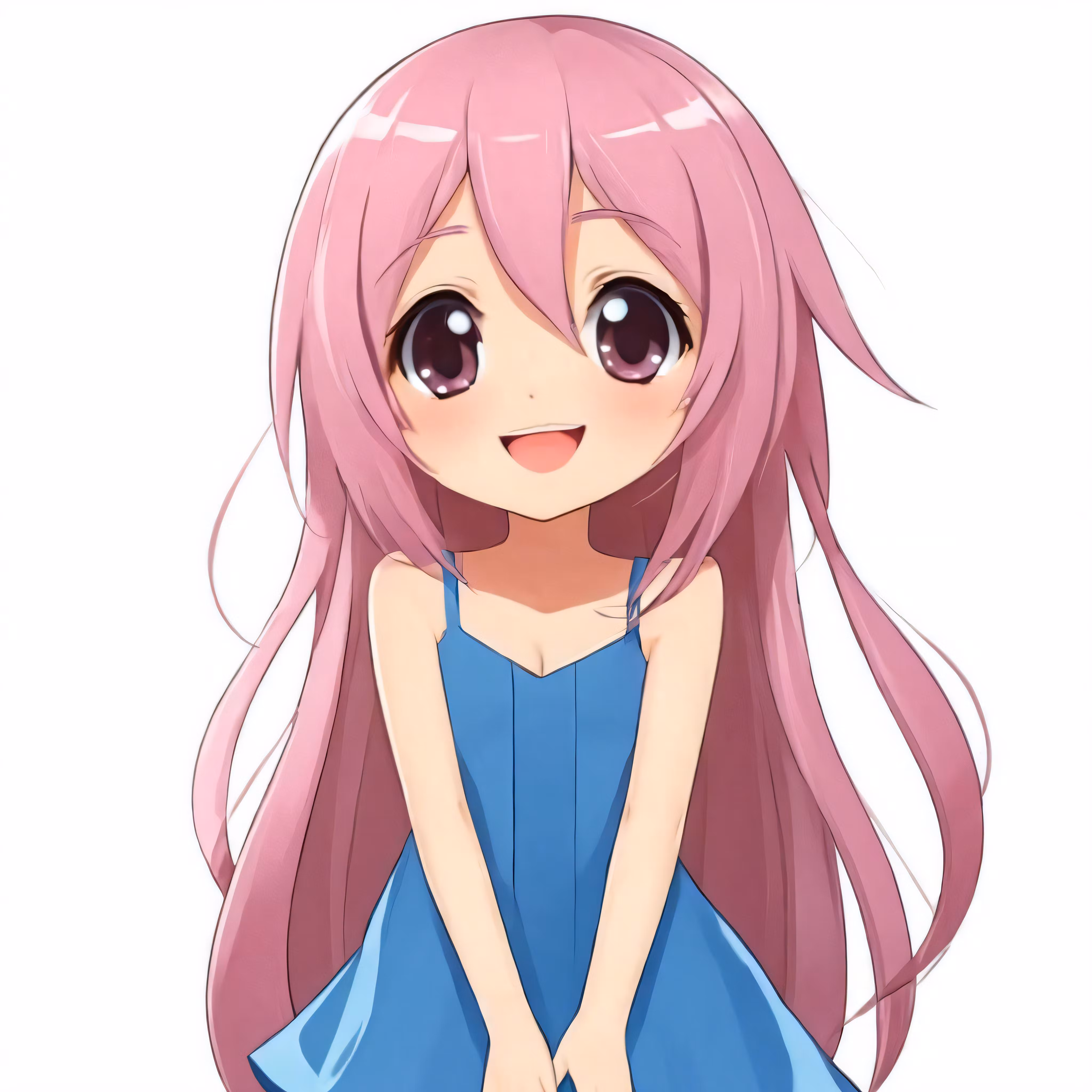 High resolution picture, free to use, a young girl wearing a blue dress with pink hair