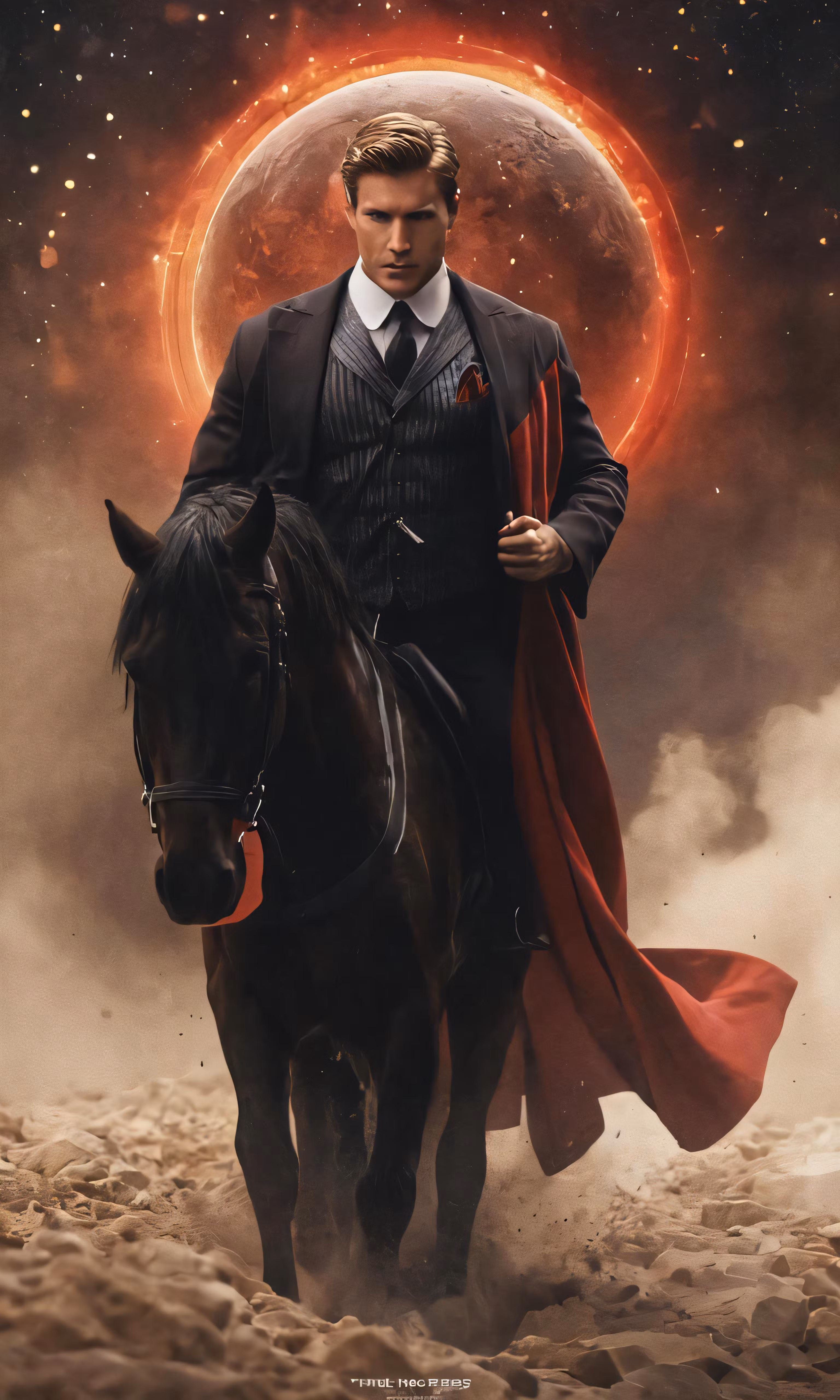 High resolution picture, free to use, a young man in black riding on the back of a horse