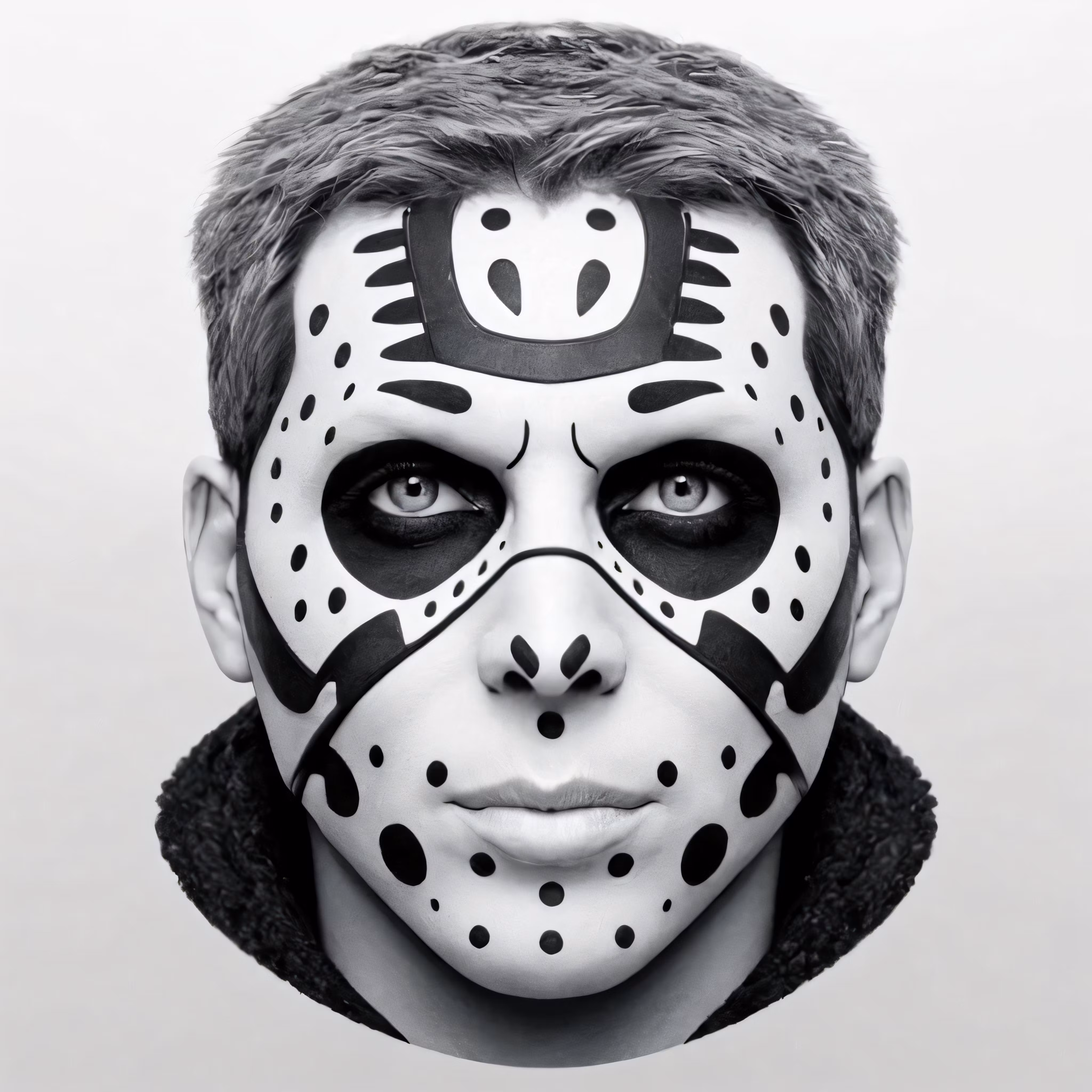 High resolution picture, free to use, a young man is wearing black and white paint on his face