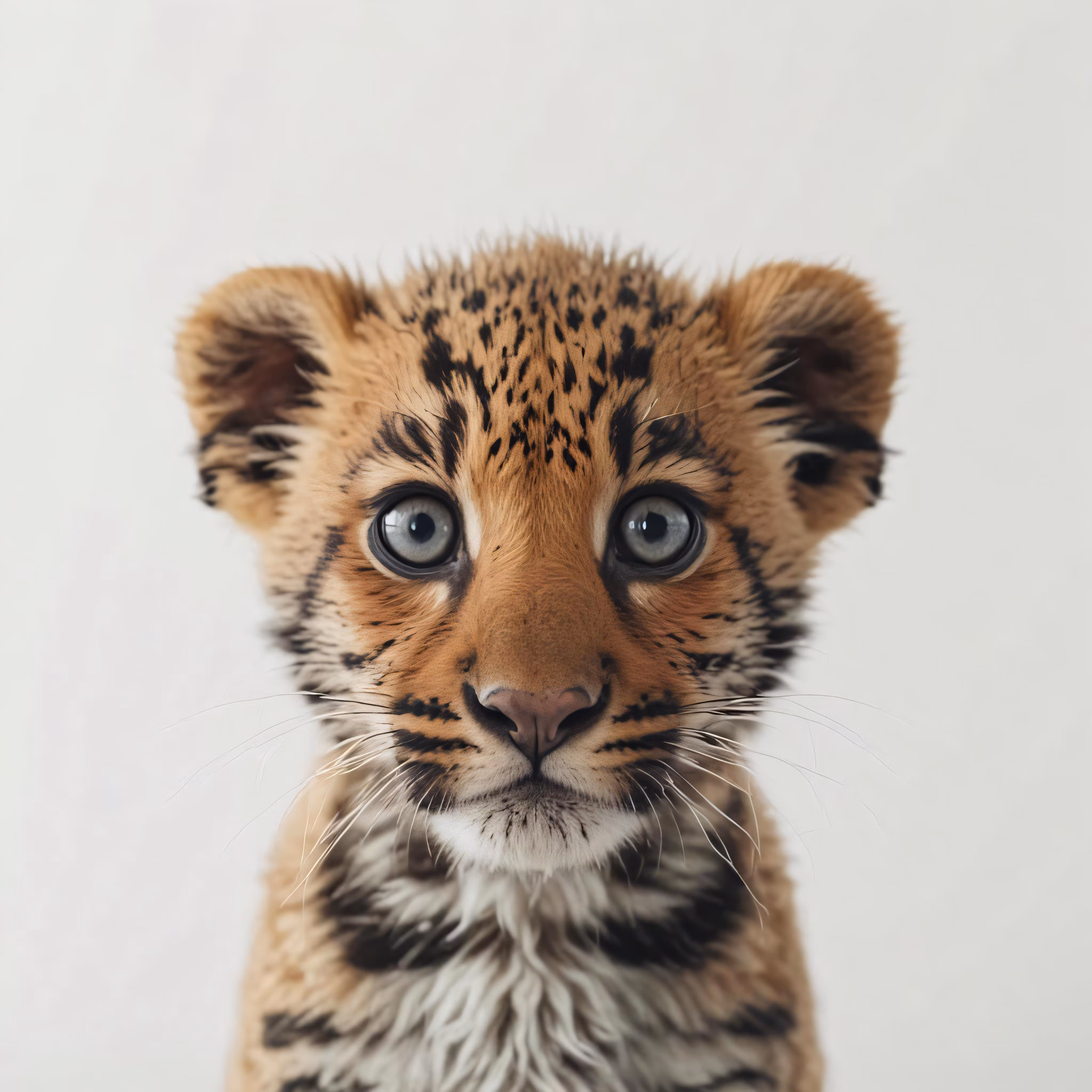 High resolution picture, free to use, a young tiger cub with a very surprised look