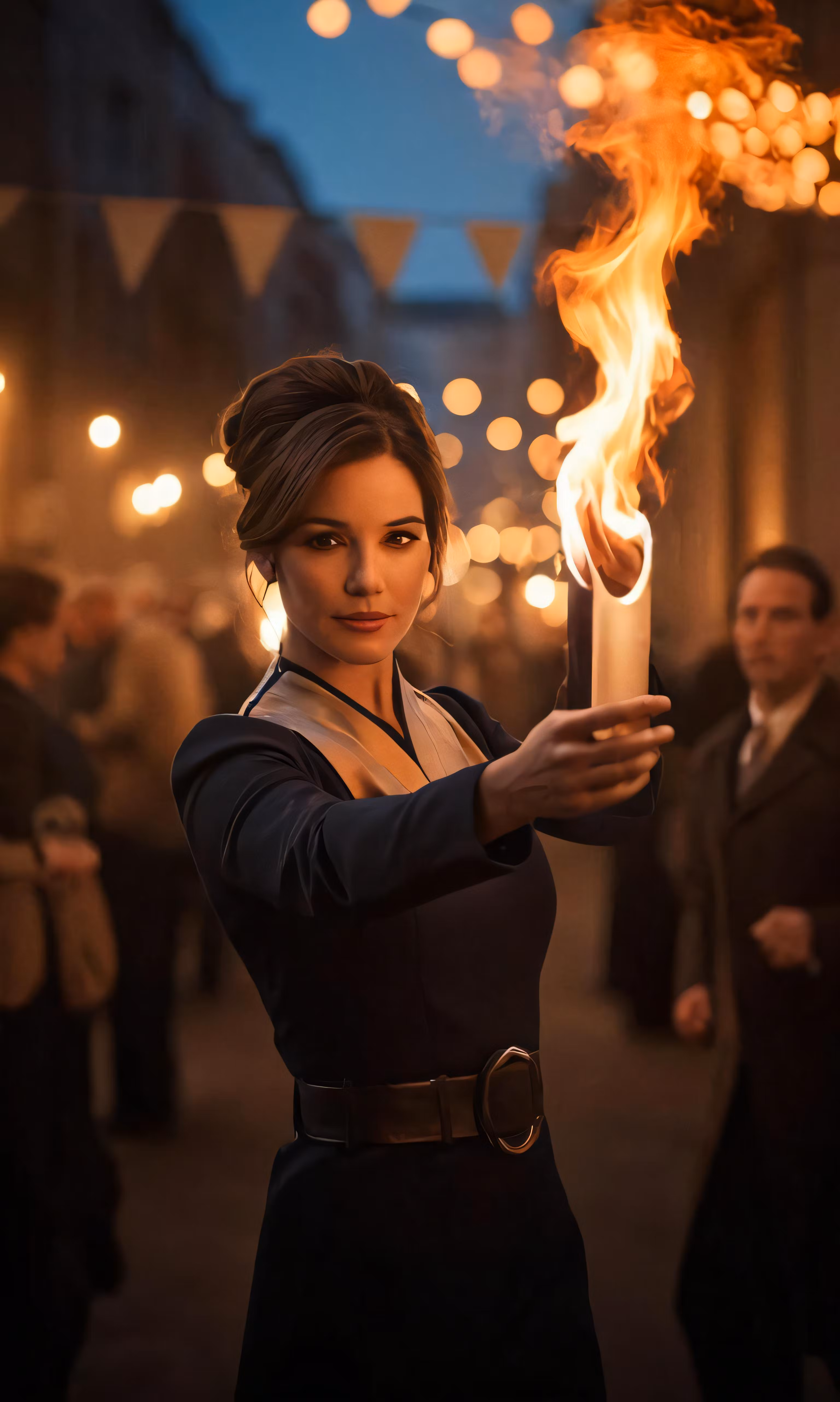 High resolution picture, free to use, a young woman holds a candle at an outdoor party