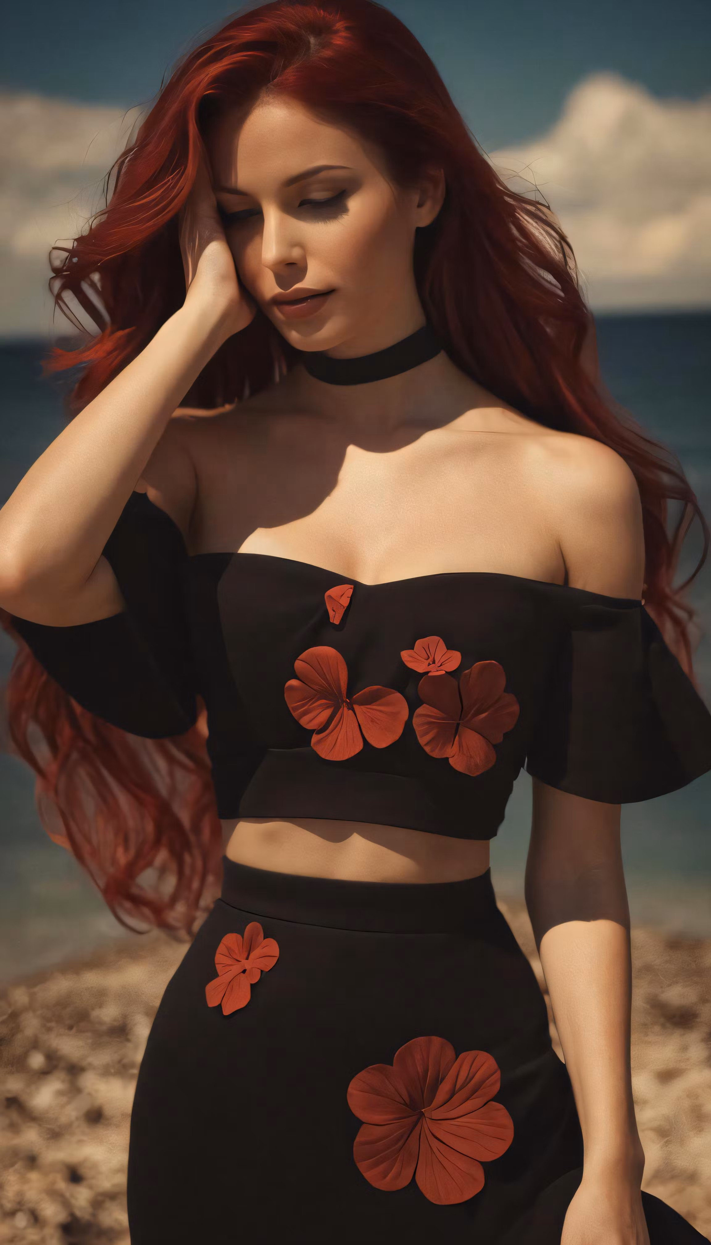 High resolution picture, free to use, a young woman poses in a black skirt on the beach