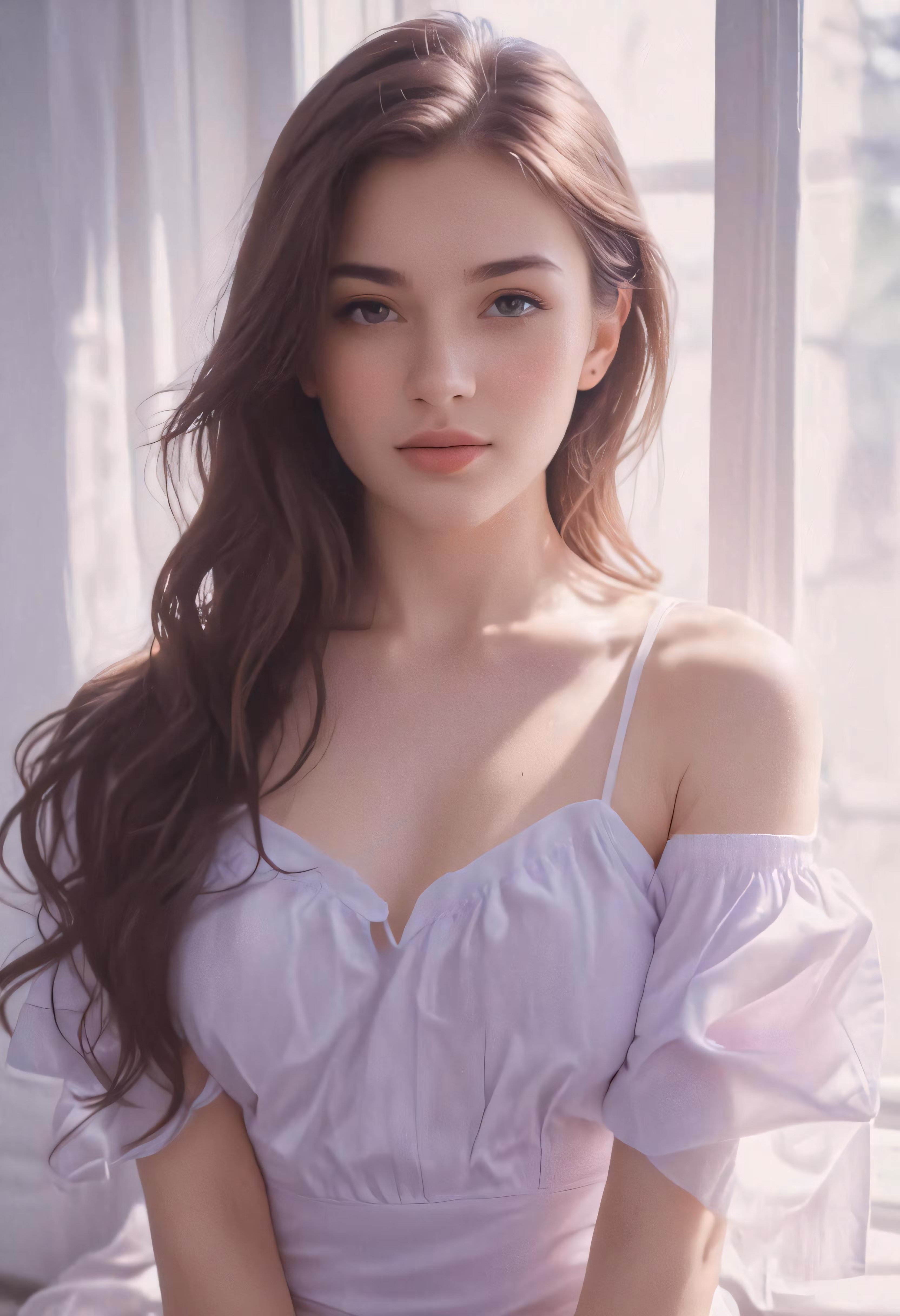 High resolution picture, free to use, a young woman sitting on the bed and posing for the camera