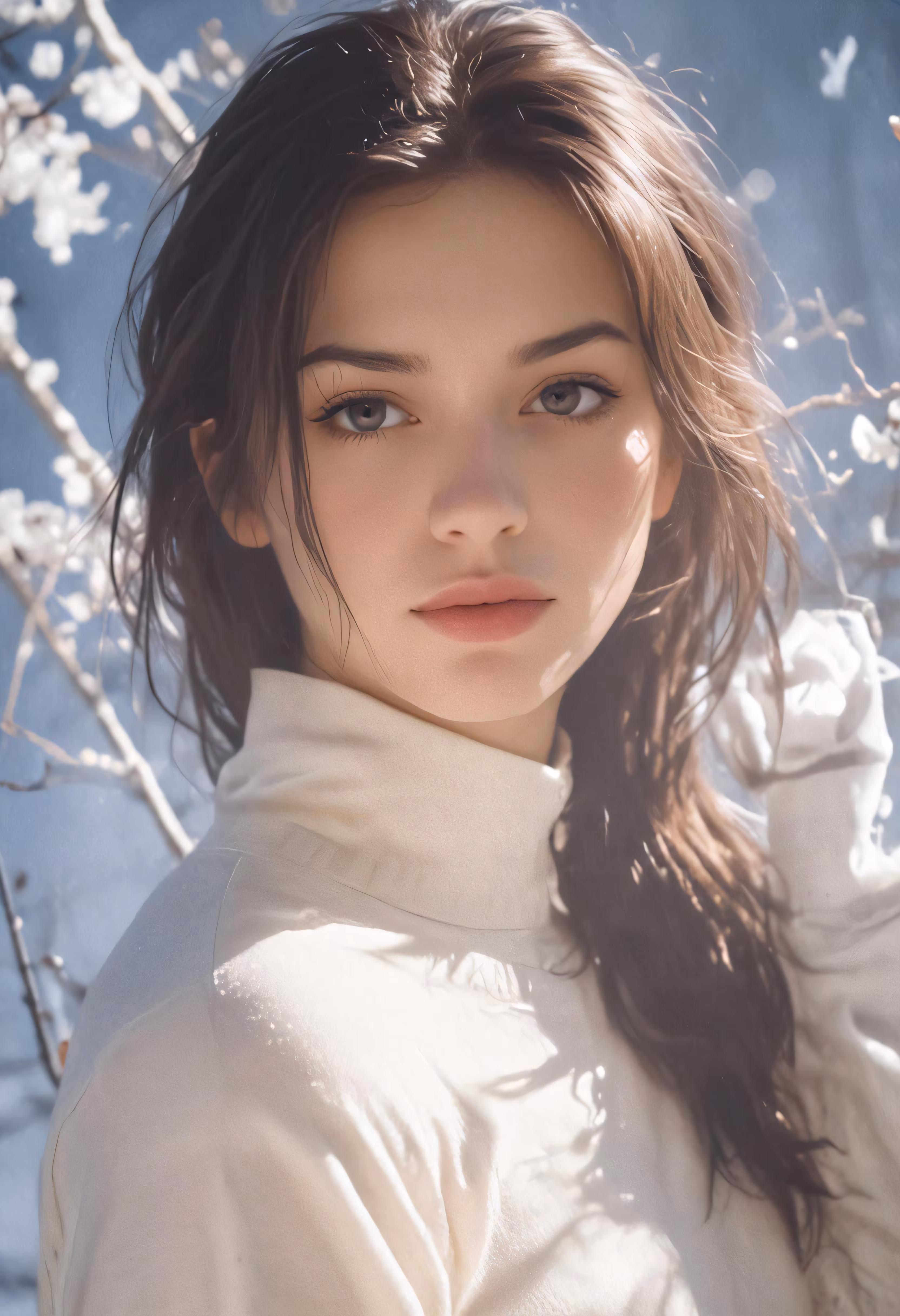 High resolution picture, free to use, a young woman standing in front of a tree