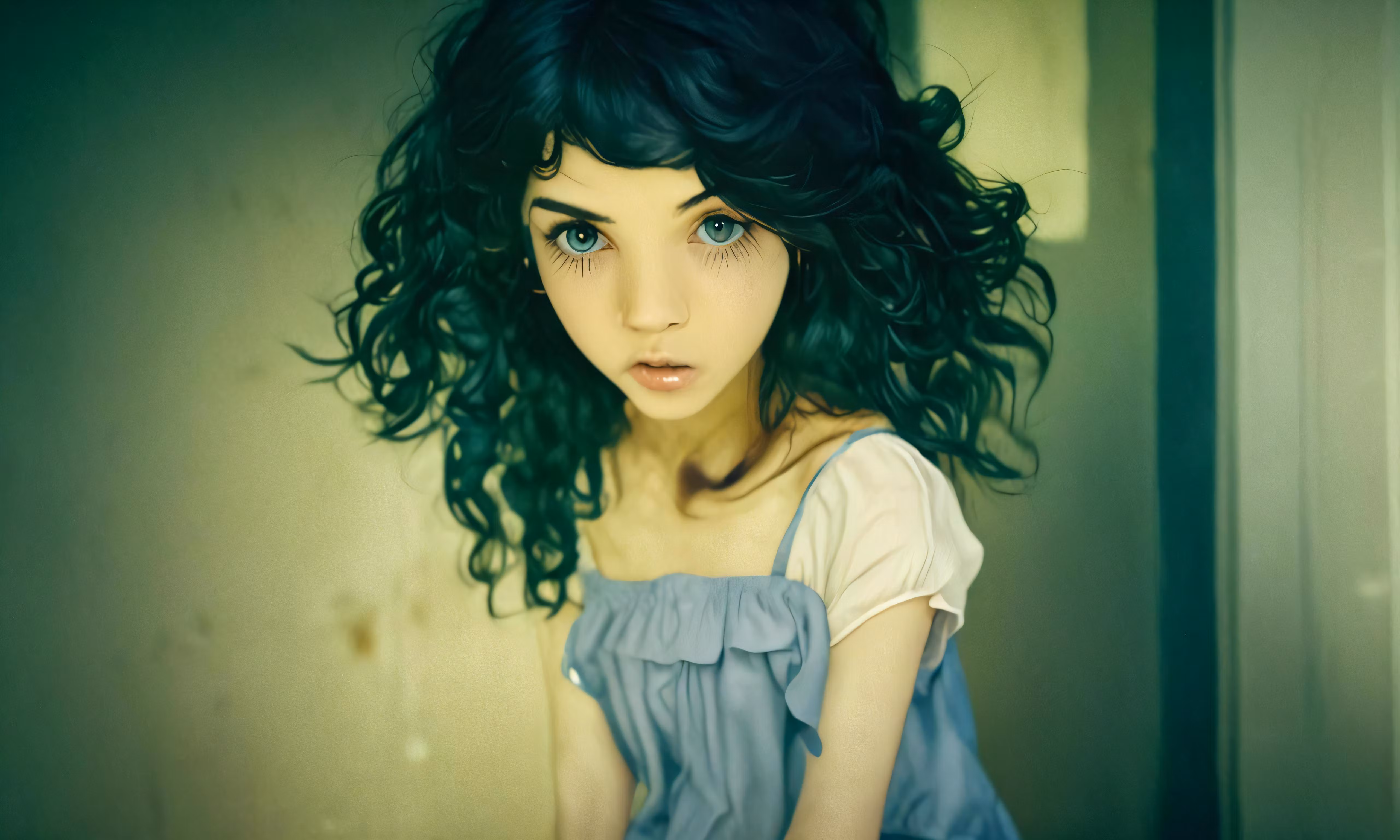 High resolution picture, free to use, a young woman wearing a dress and green eyes