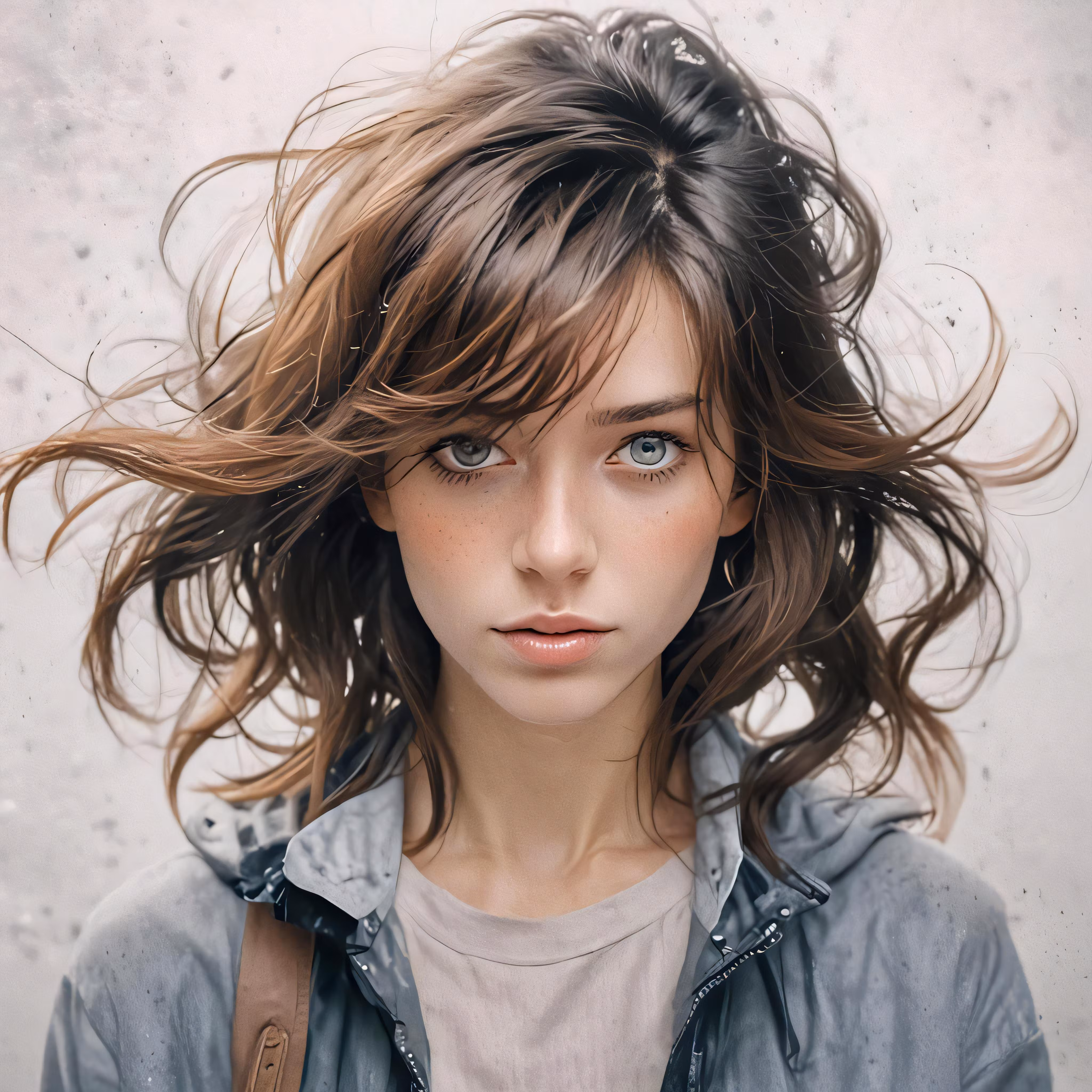 High resolution picture, free to use, a young woman with her hair flying in the wind