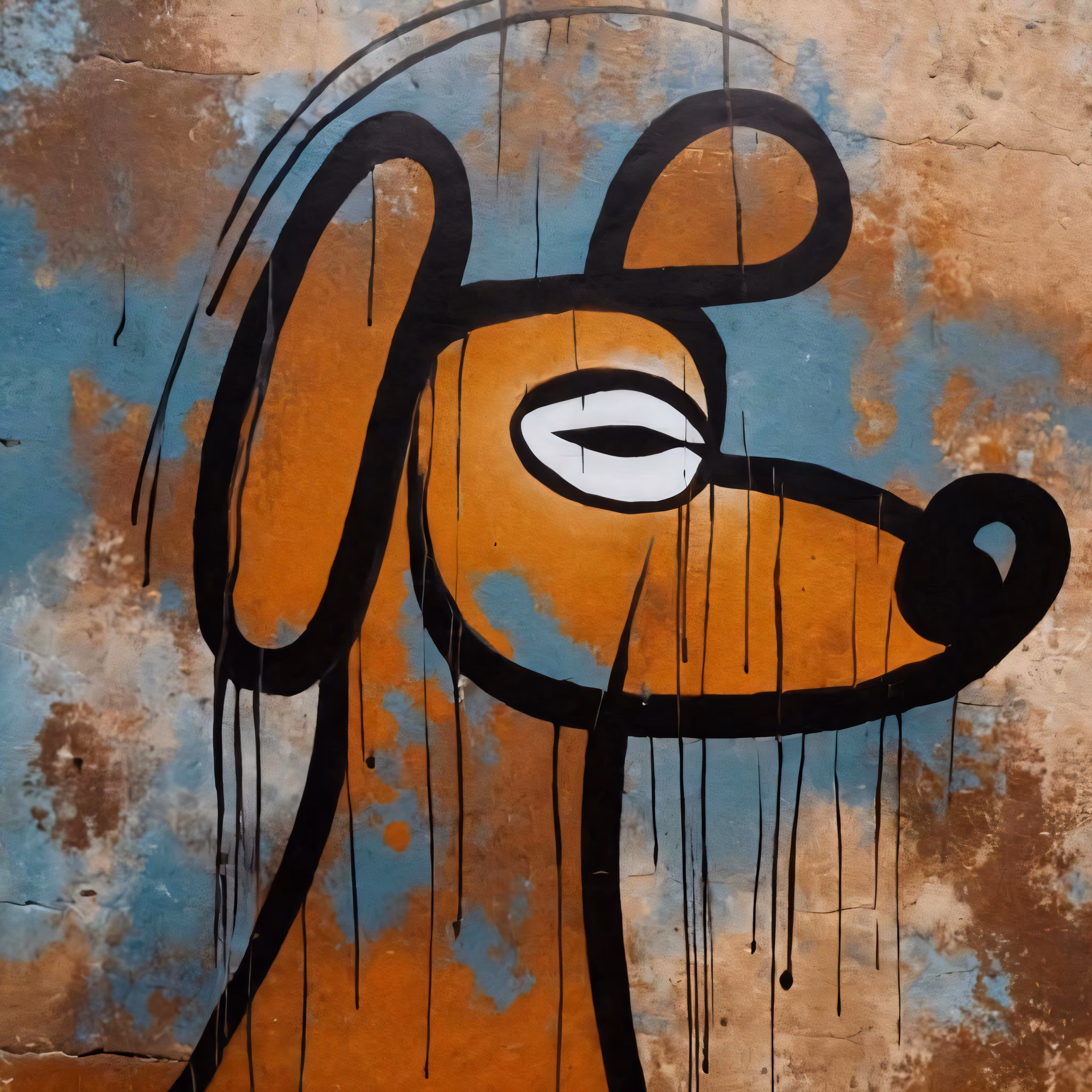 High resolution picture, free to use, an abstract dog is drawn on a cement wall