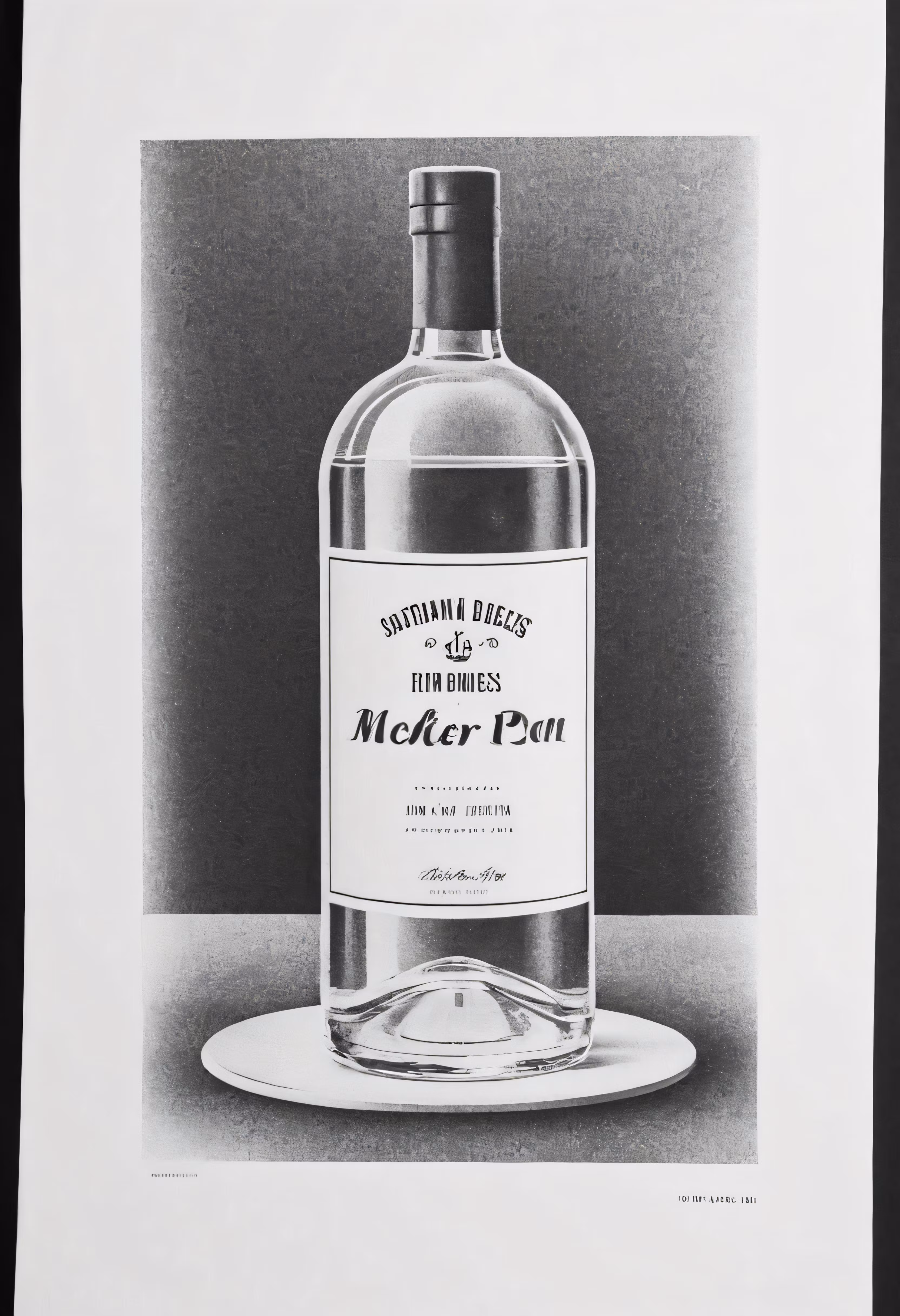 High resolution picture, free to use, an ad featuring a bottle of liquor sitting on a table