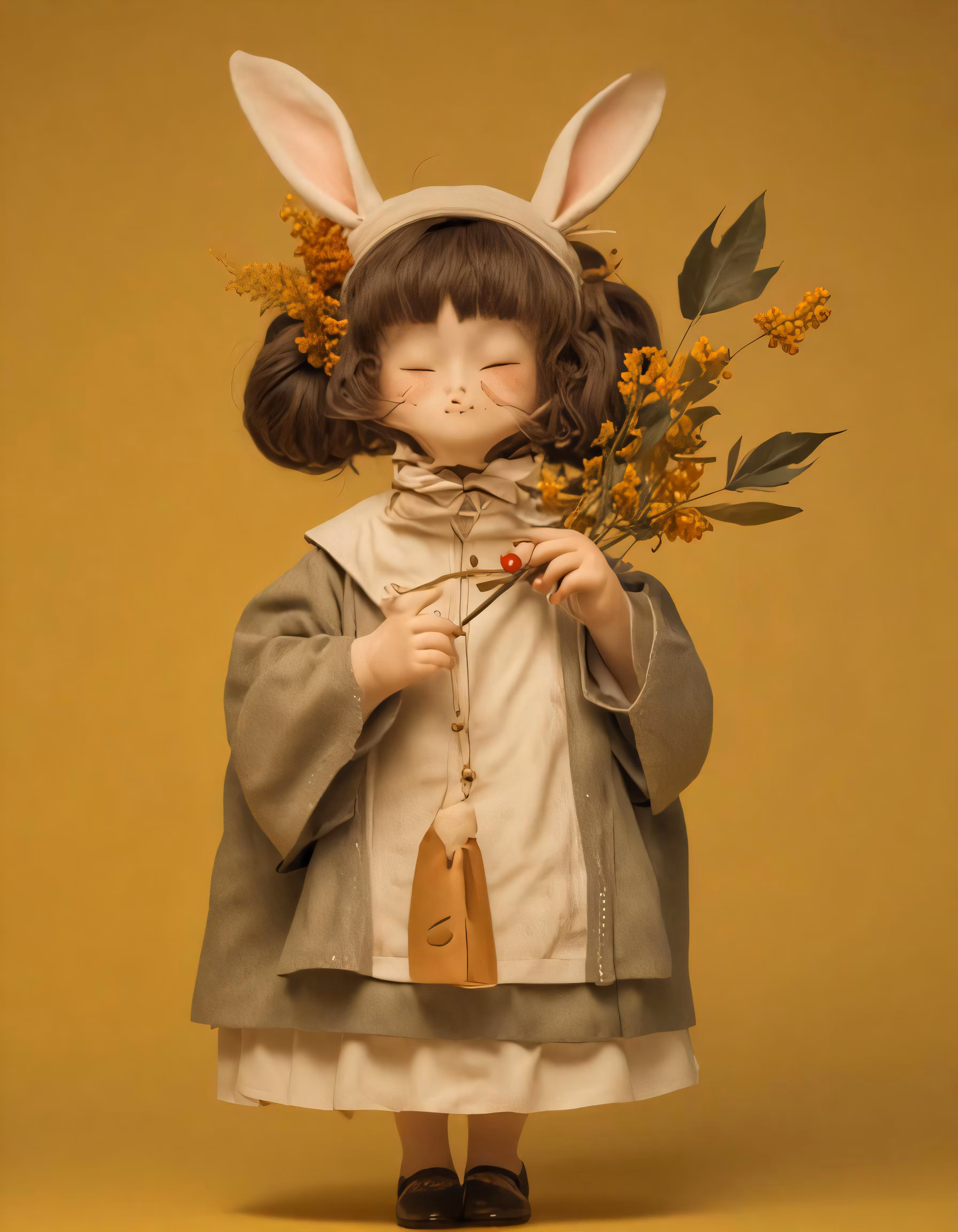 High resolution picture, free to use, an adorable girl in a bunny costume holding flowers