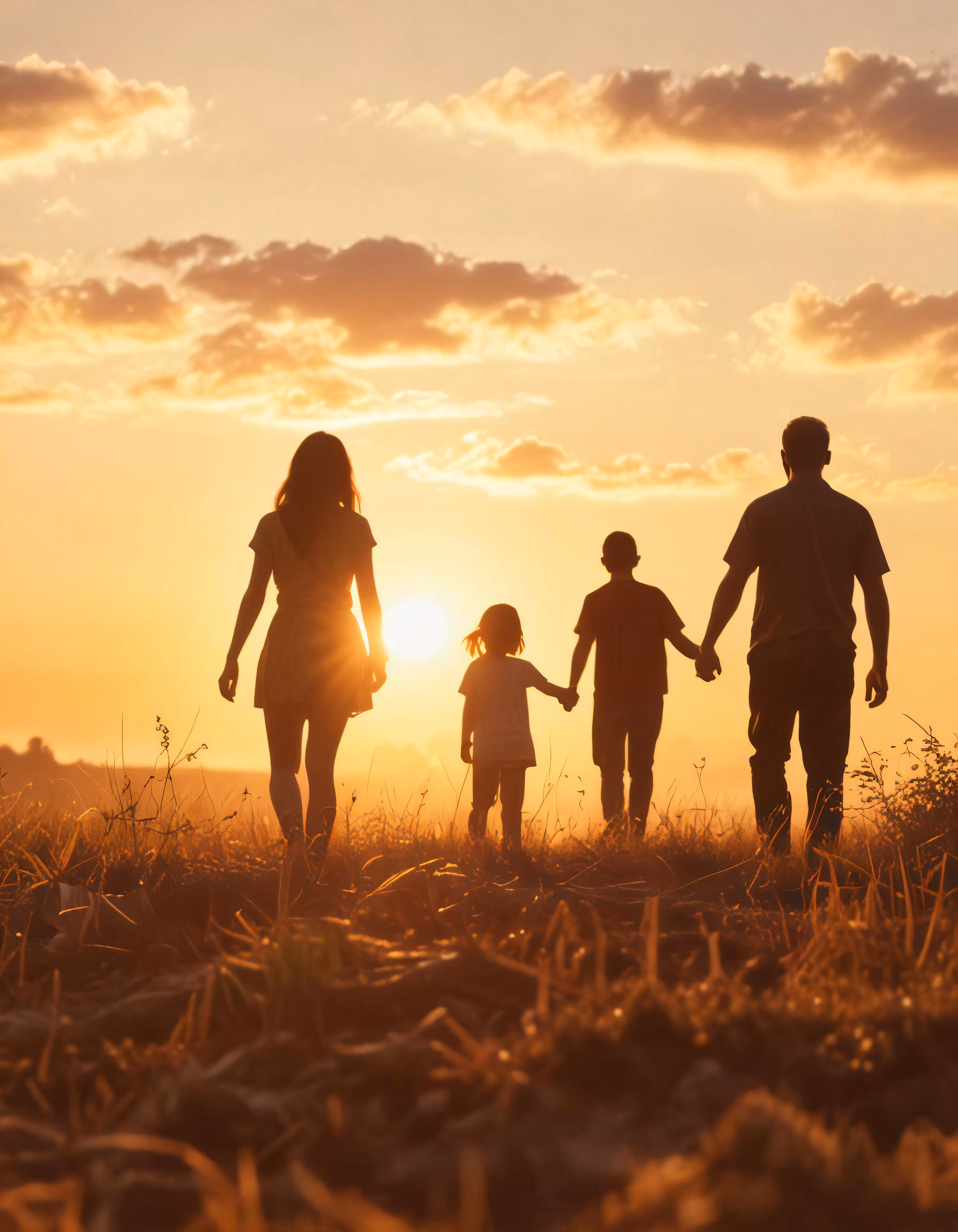 High resolution picture, free to use, an adult and children walking with their arms around each other in the grass