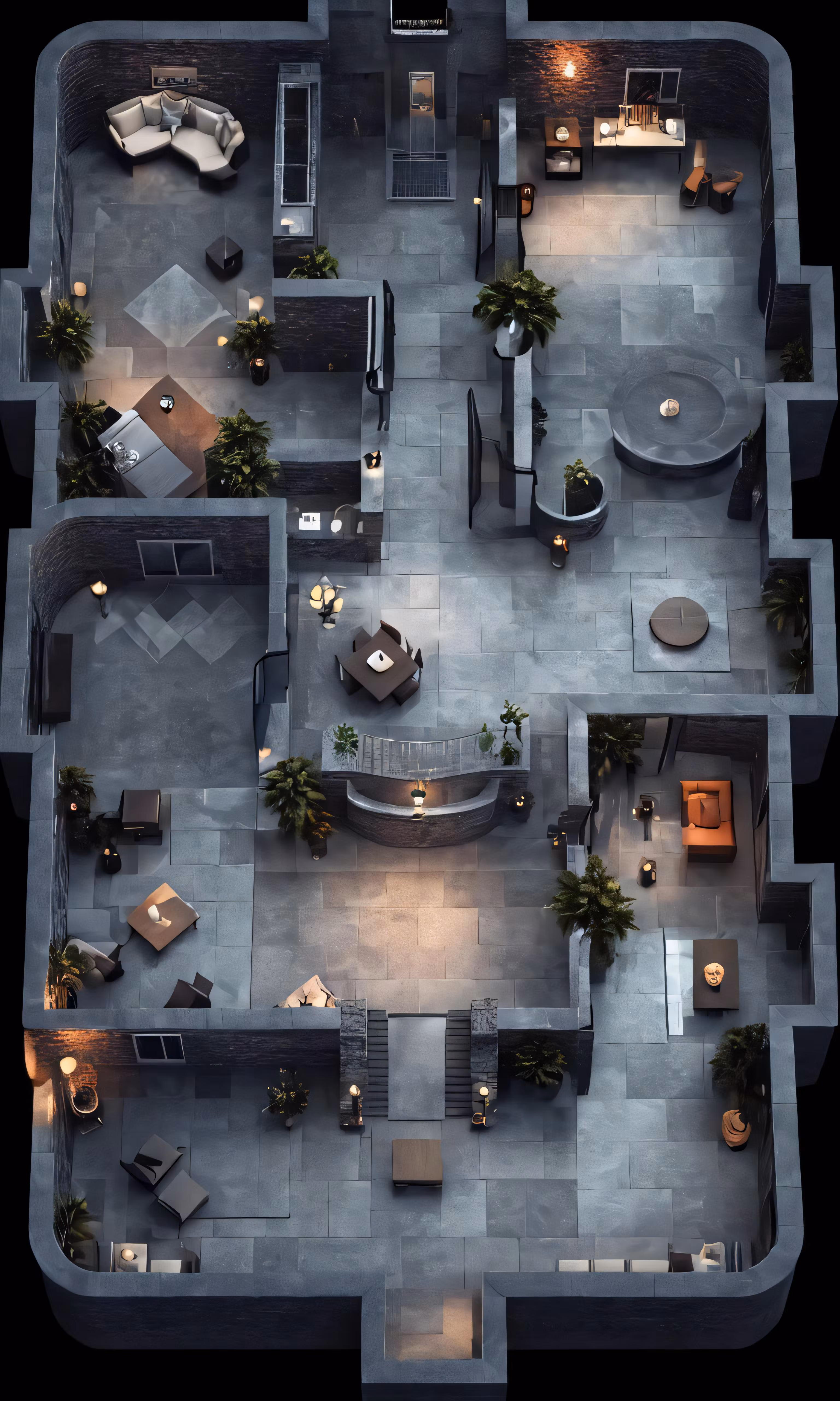 High resolution picture, free to use, an aerial view of a house surrounded by plants