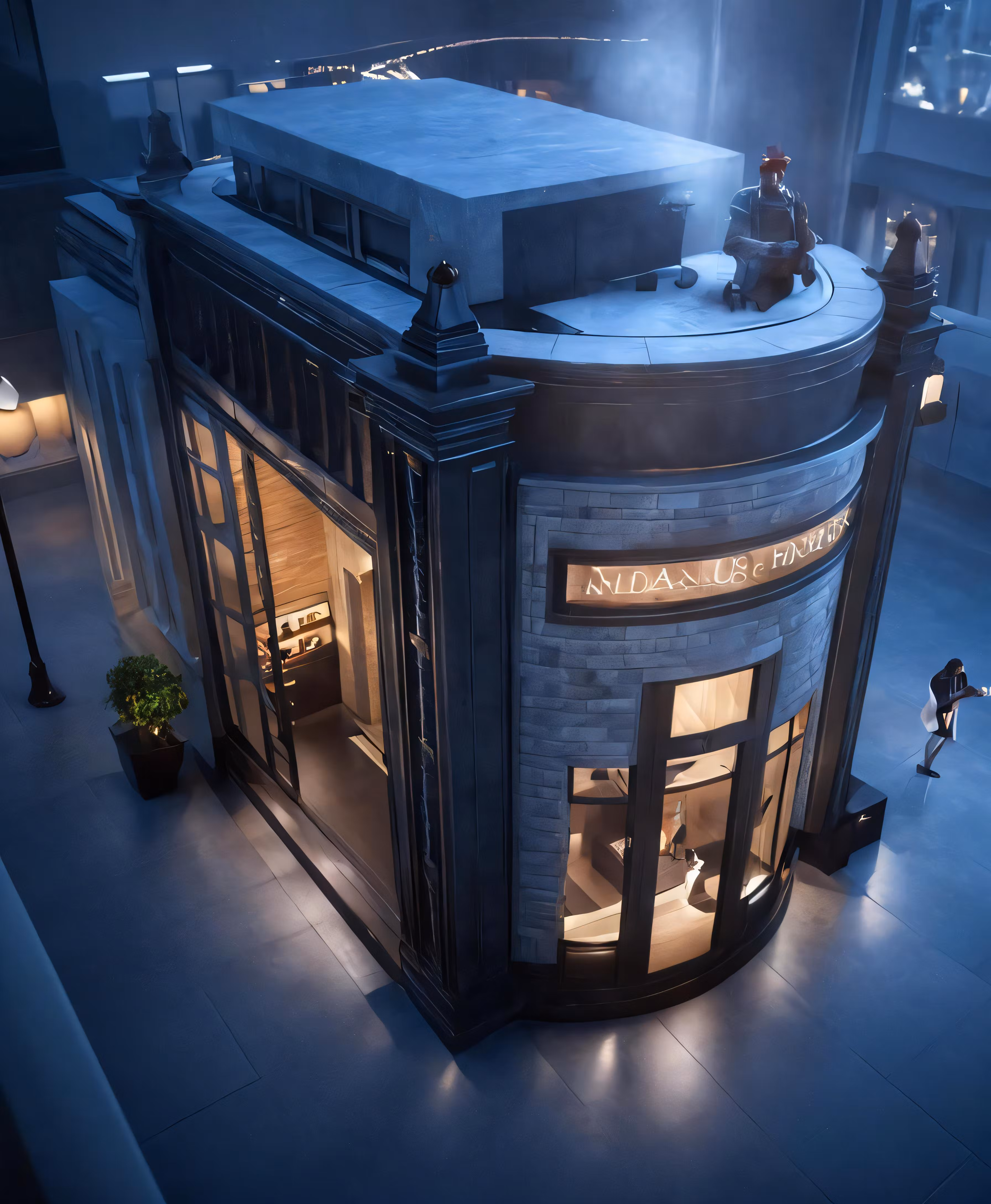 High resolution picture, free to use, an aerial view shows the architecture of a building, light   up, and smoke billowing