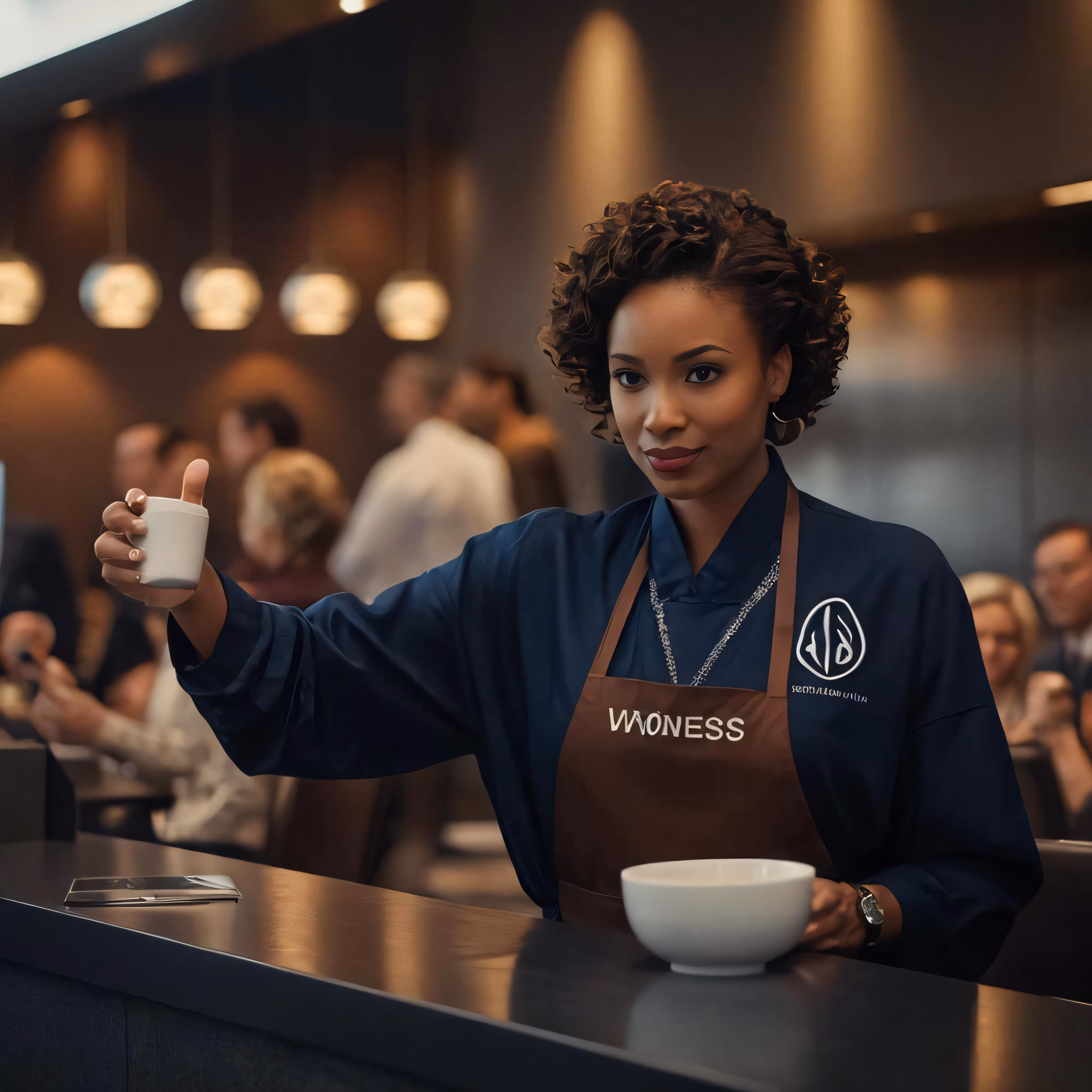 High resolution picture, free to use, an african american waitress gives a thumbs up at the counter