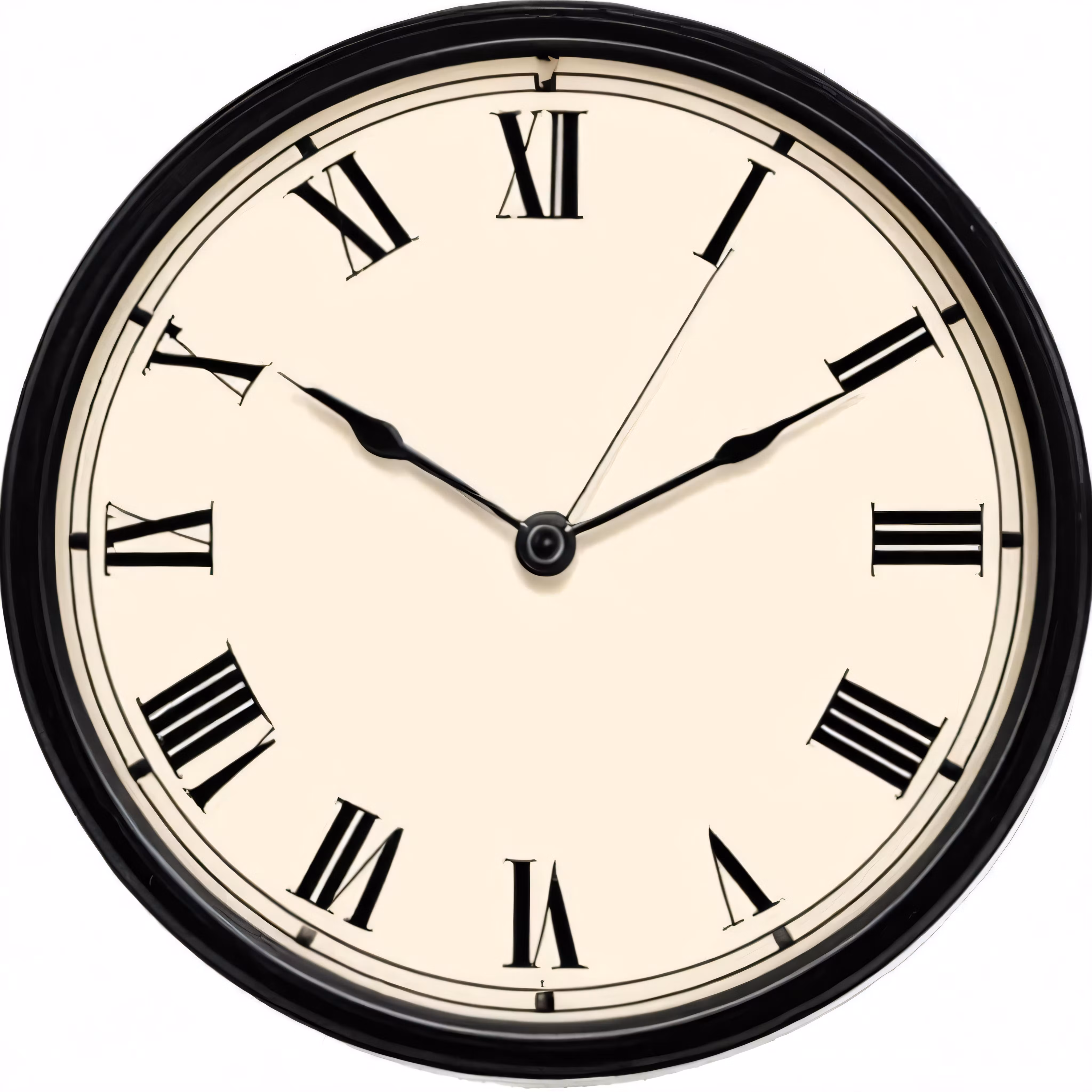 High resolution picture, free to use, an analog clock on a white background with roman numerals