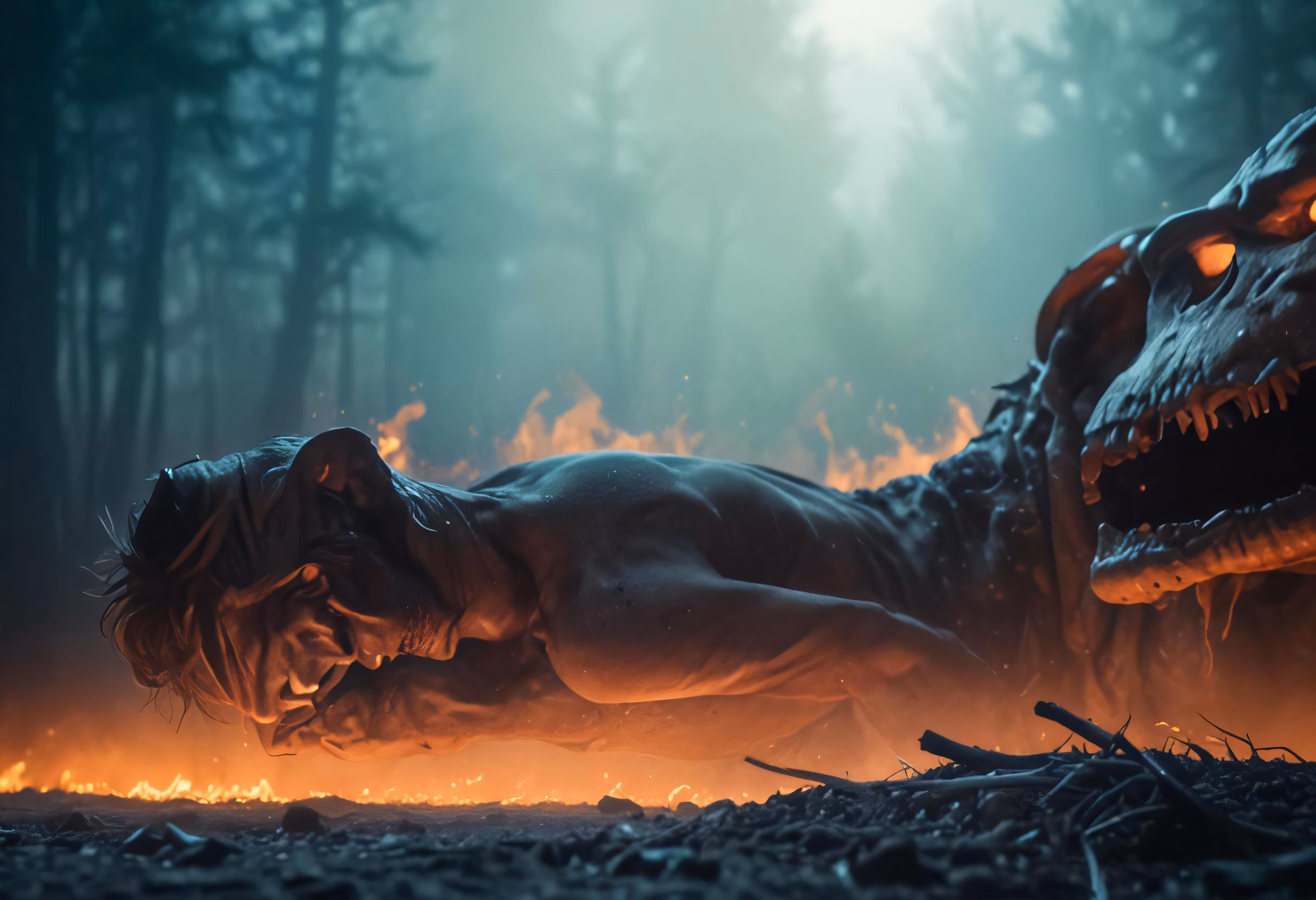 High resolution picture, free to use, an animal body with sharp teeth is shown in the background