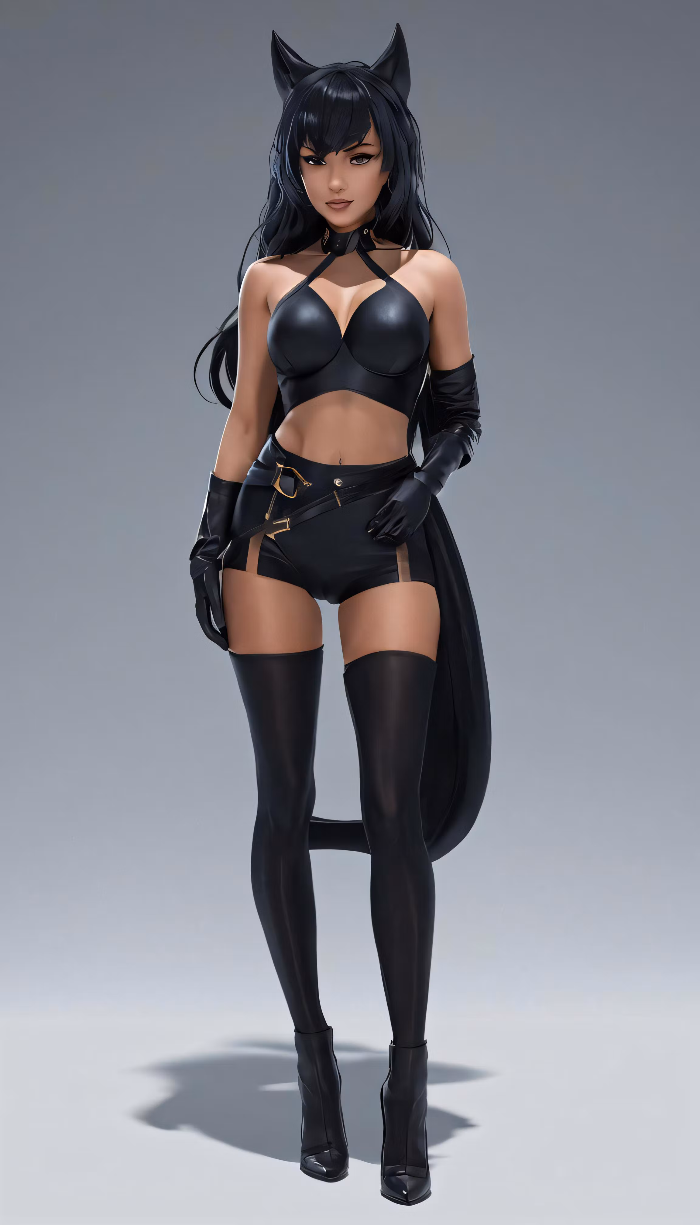 High resolution picture, free to use, an animation character with cats on her chest and tail