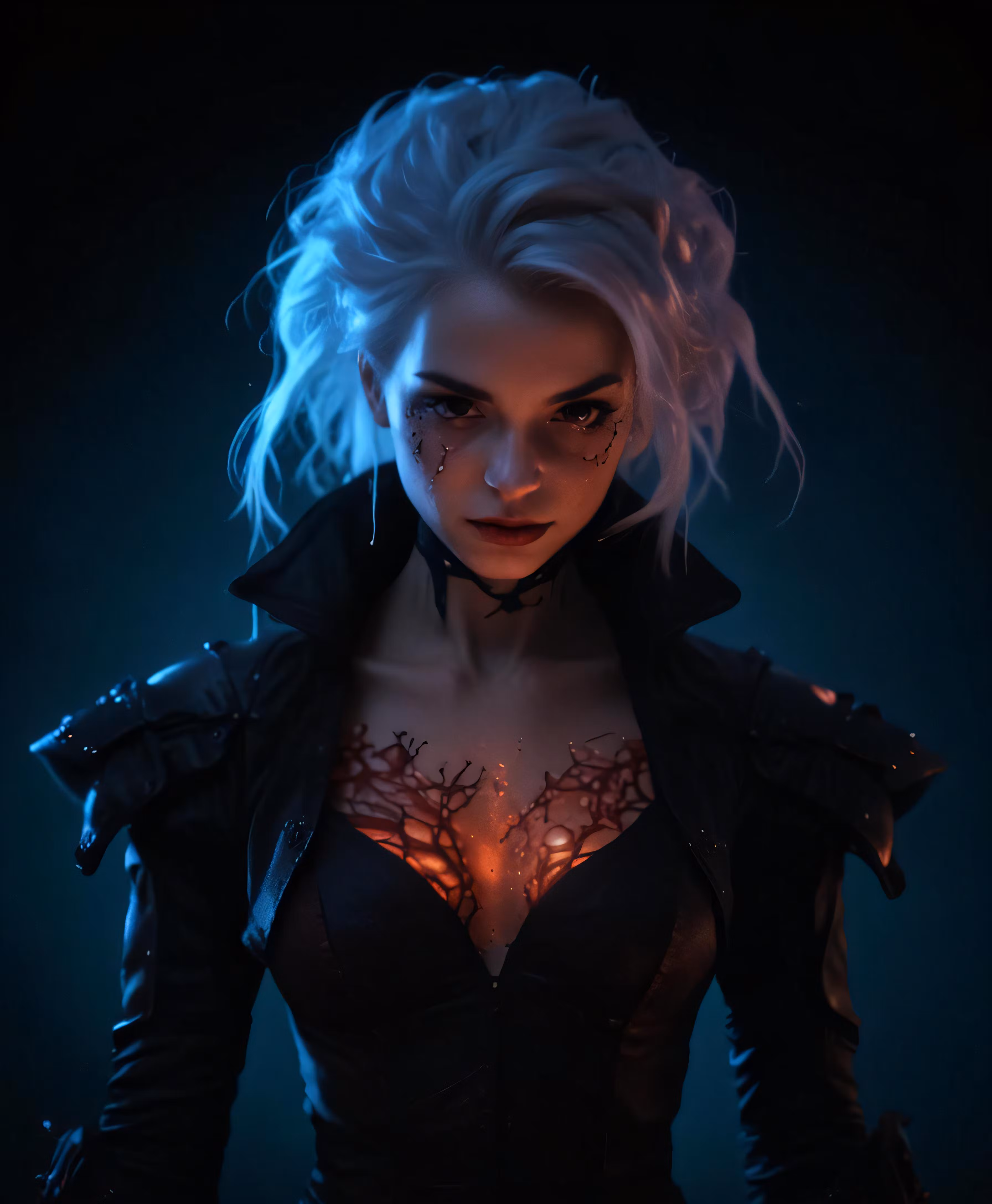 High resolution picture, free to use, an anime girl with white hair and wearing leather outfits