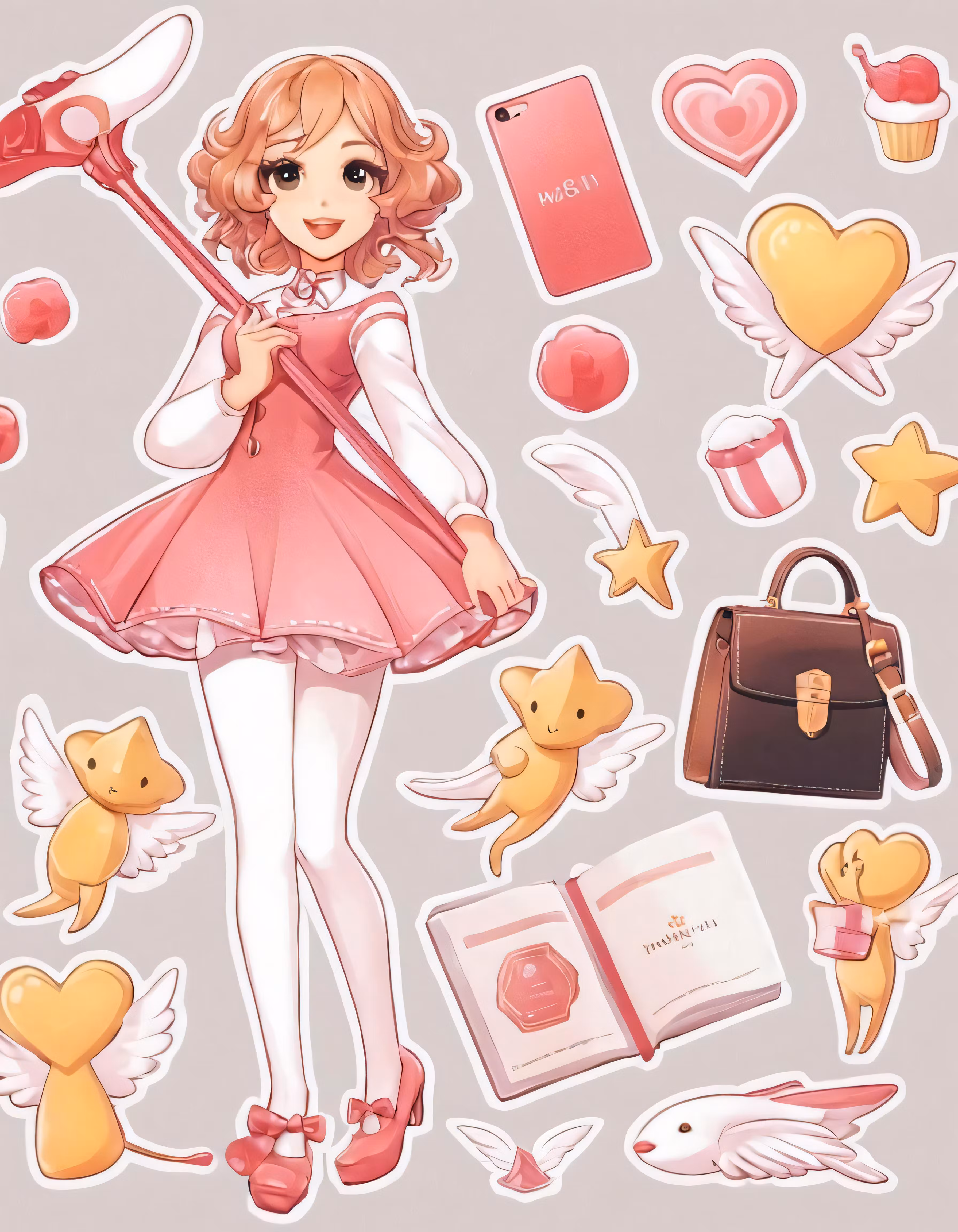 High resolution picture, free to use, an anime picture with many items surrounding it