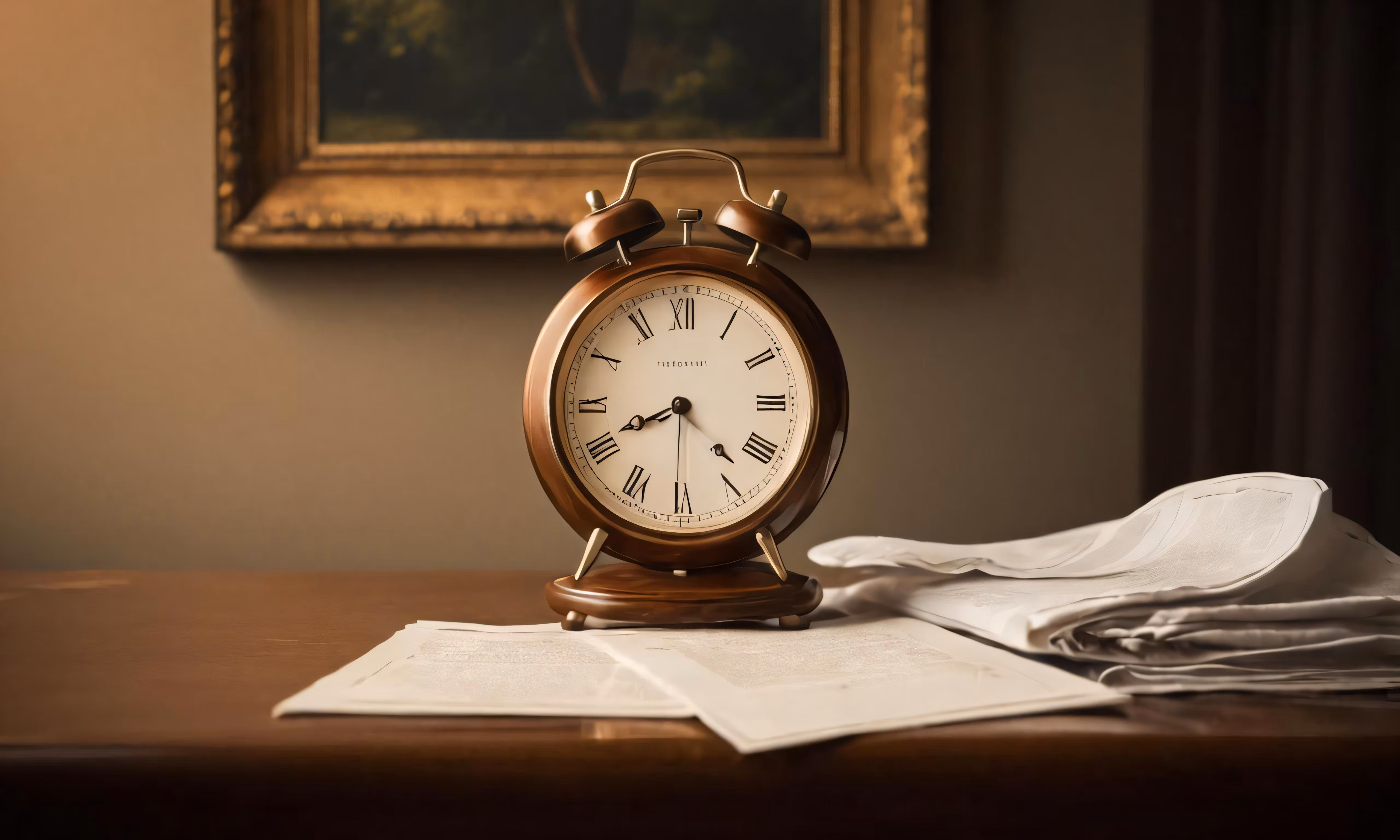 High resolution picture, free to use, an antique clock on a table with papers