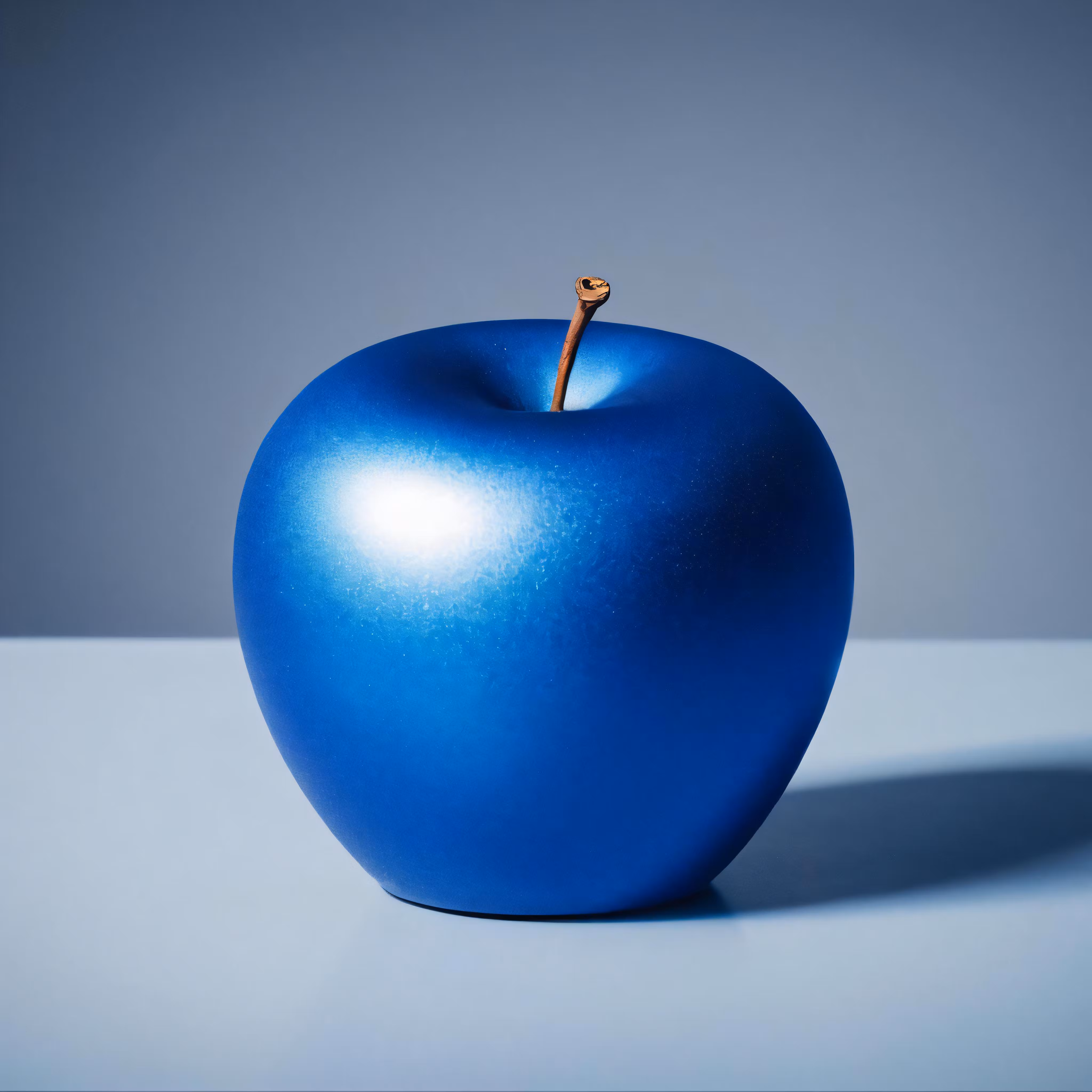 High resolution picture, free to use, an apple is shown in the middle of a blue surface