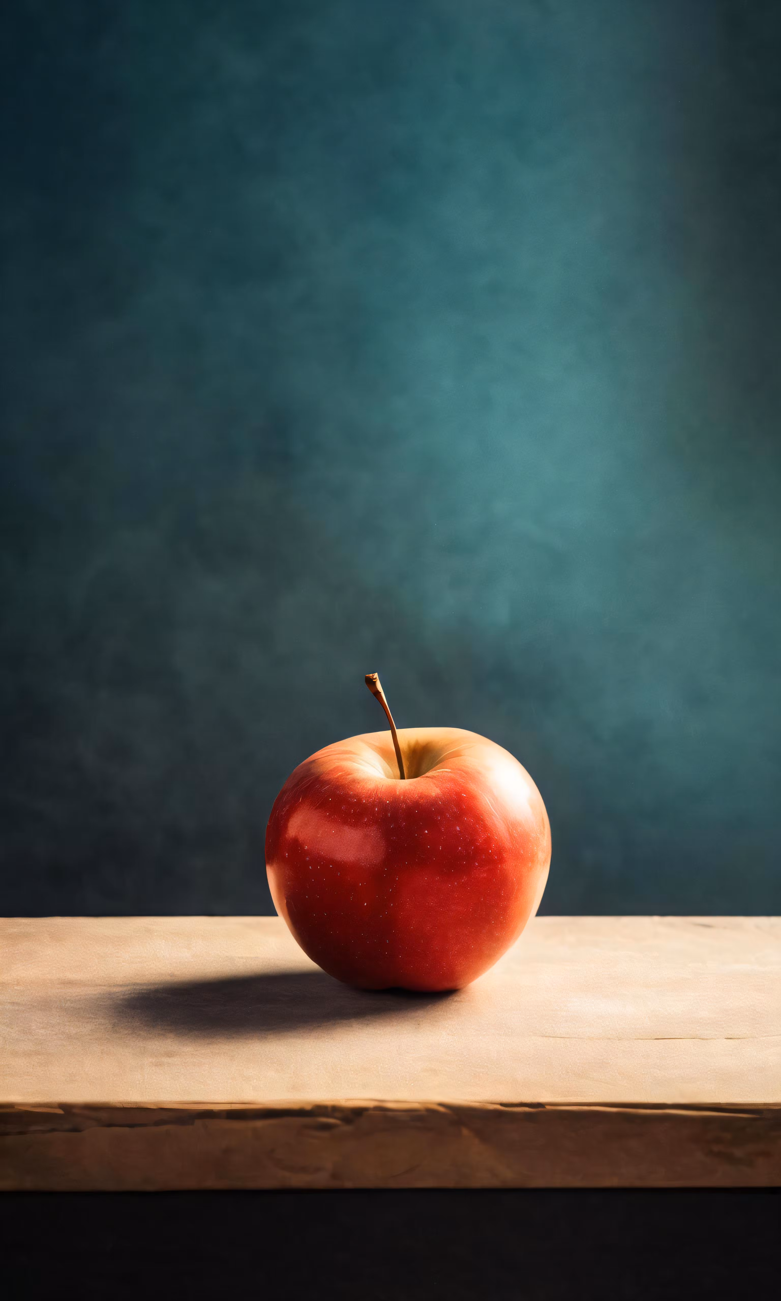 High resolution picture, free to use, an apple on a wooden table by the wall