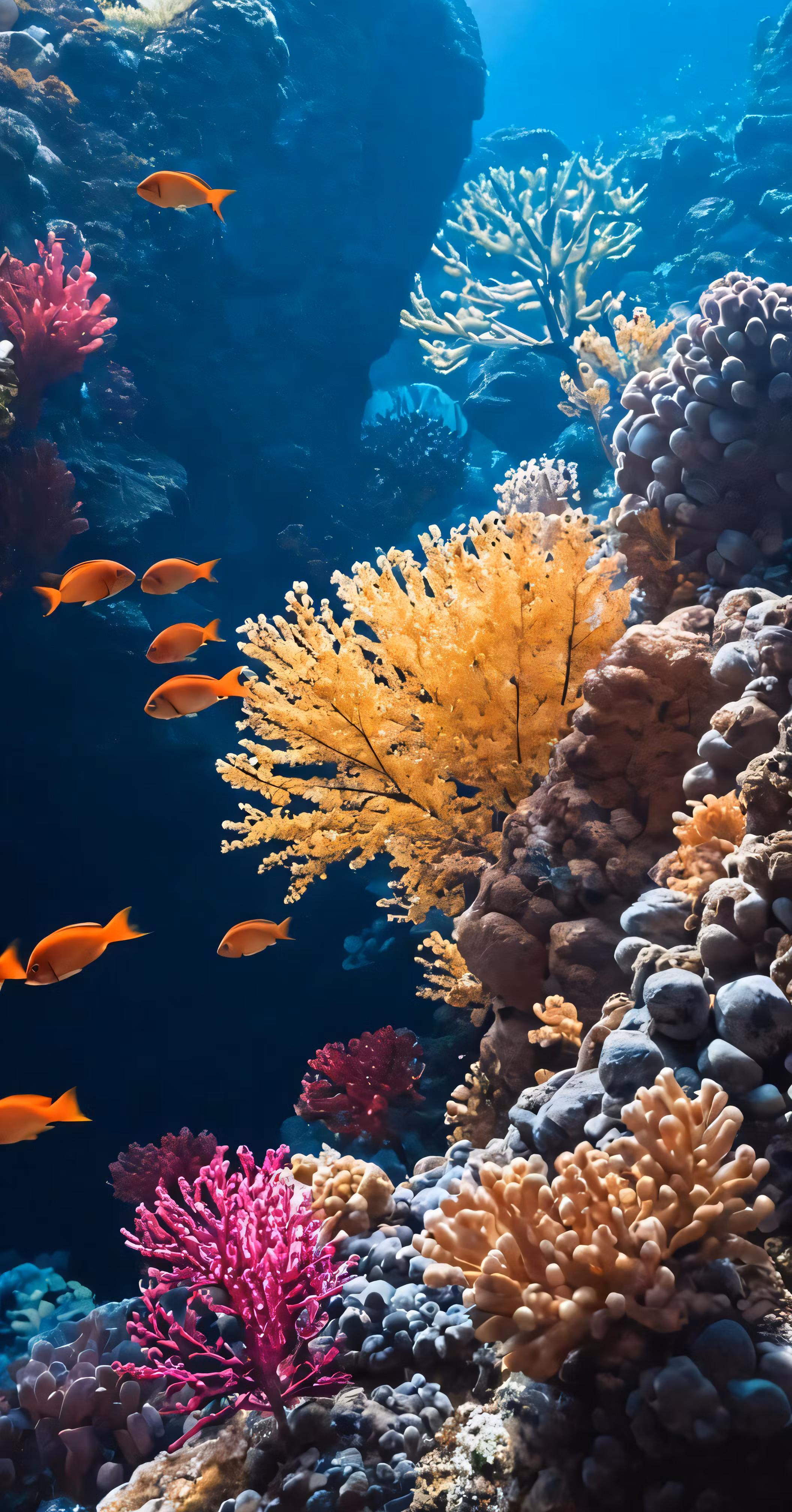 High resolution picture, free to use, an aquarium filled with colorful corals and tropical fish