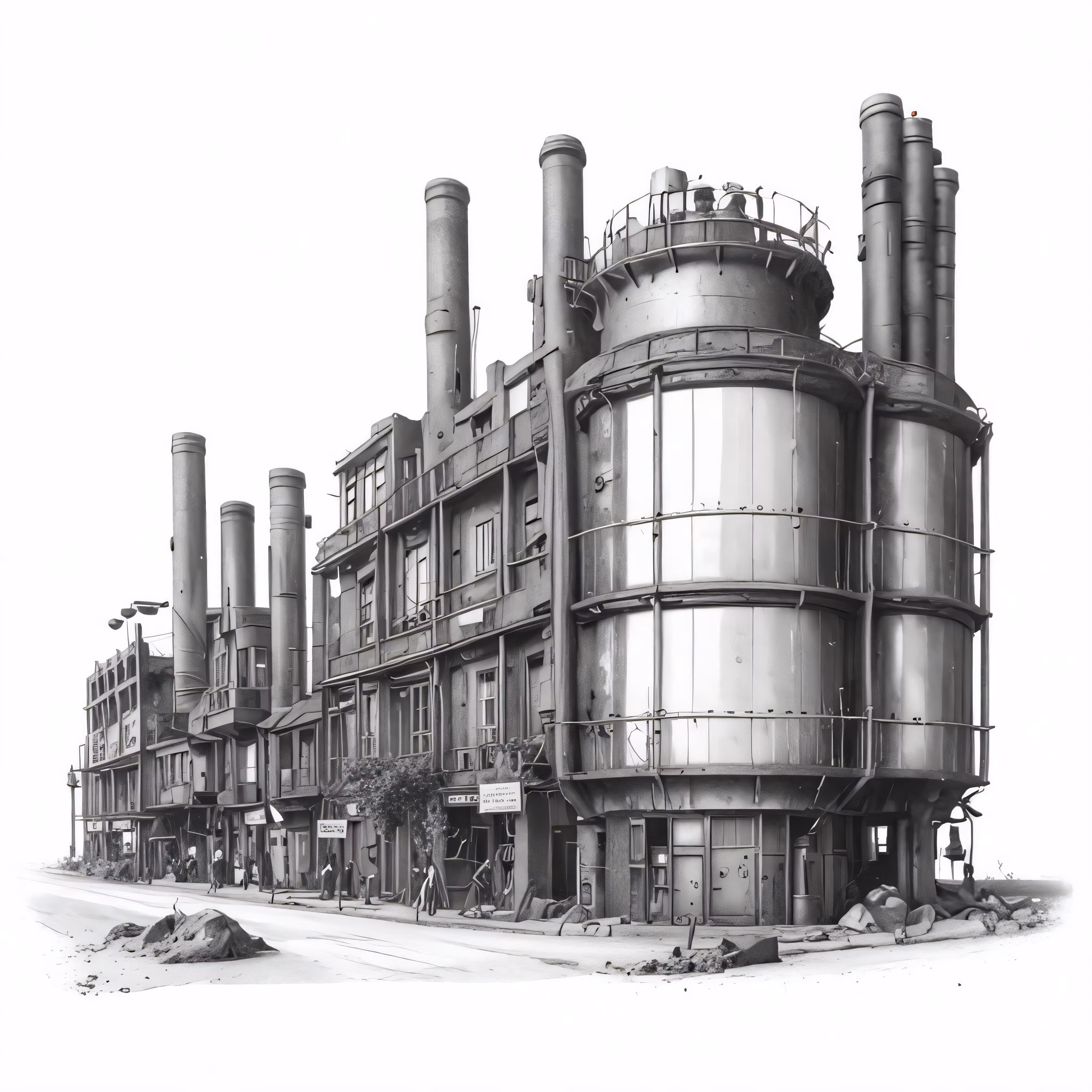 High resolution picture, free to use, an architectural rendering of a steam turbine plant