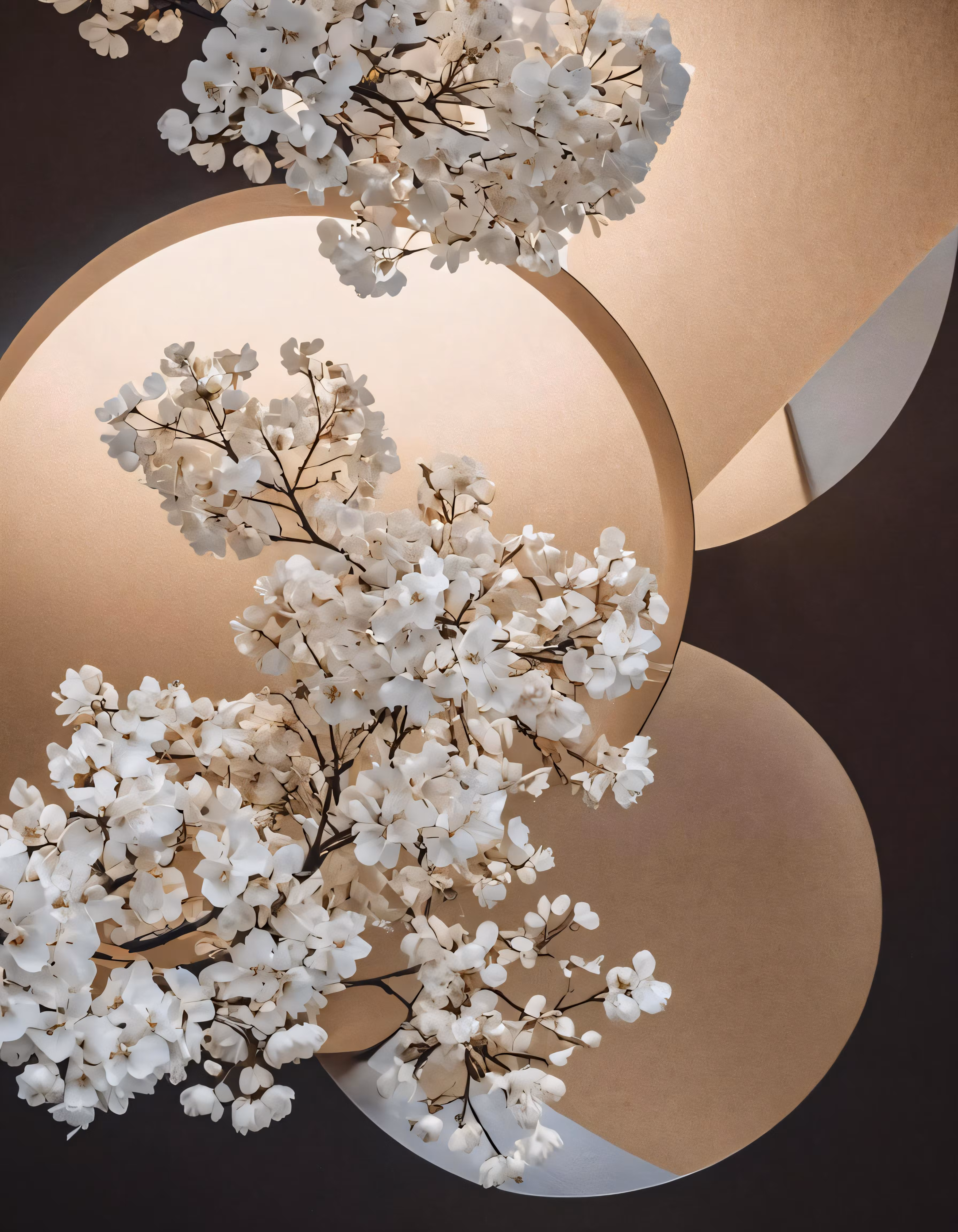 High resolution picture, free to use, an arrangement of flowers on display near circular mirror