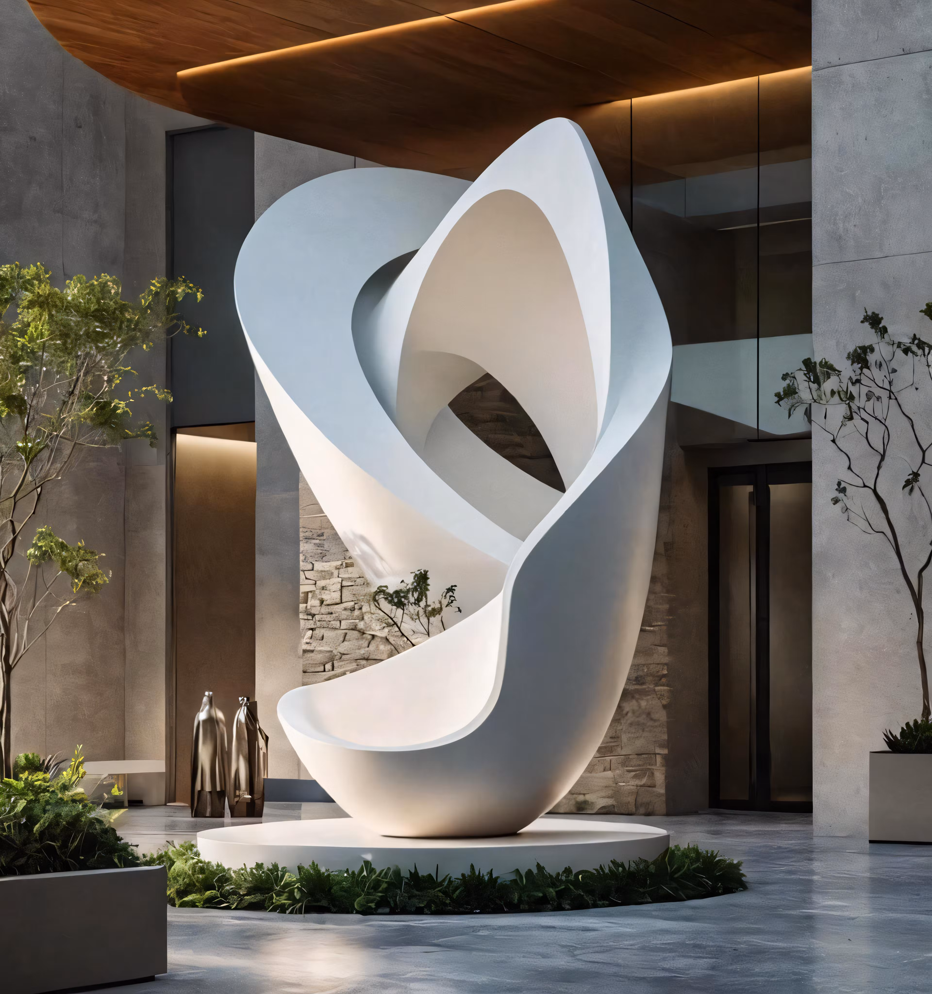 High resolution picture, free to use, an artistic architectural sculpture is pictured in a lobby