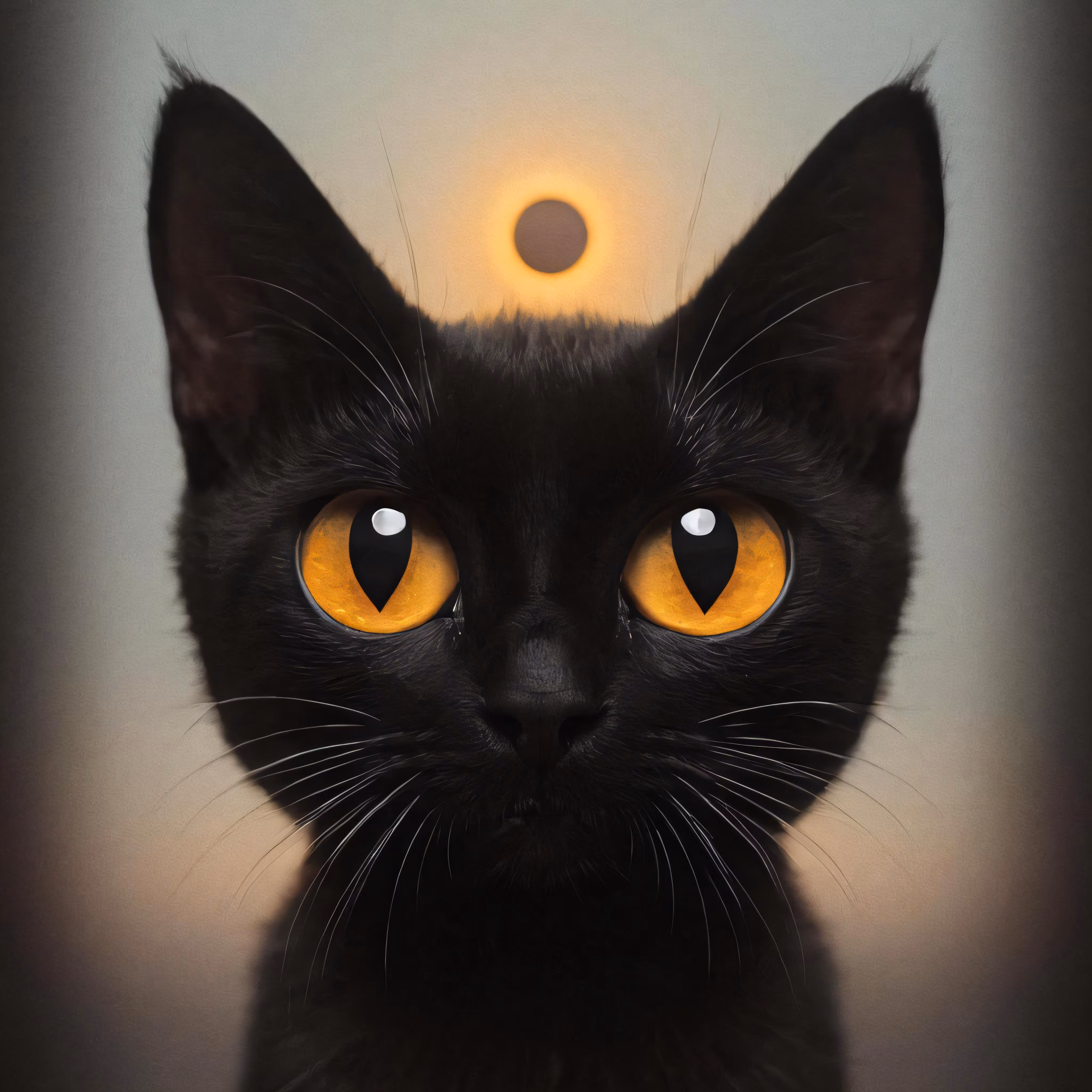 High resolution picture, free to use, an artistic photograph of a black cat with yellow eyes