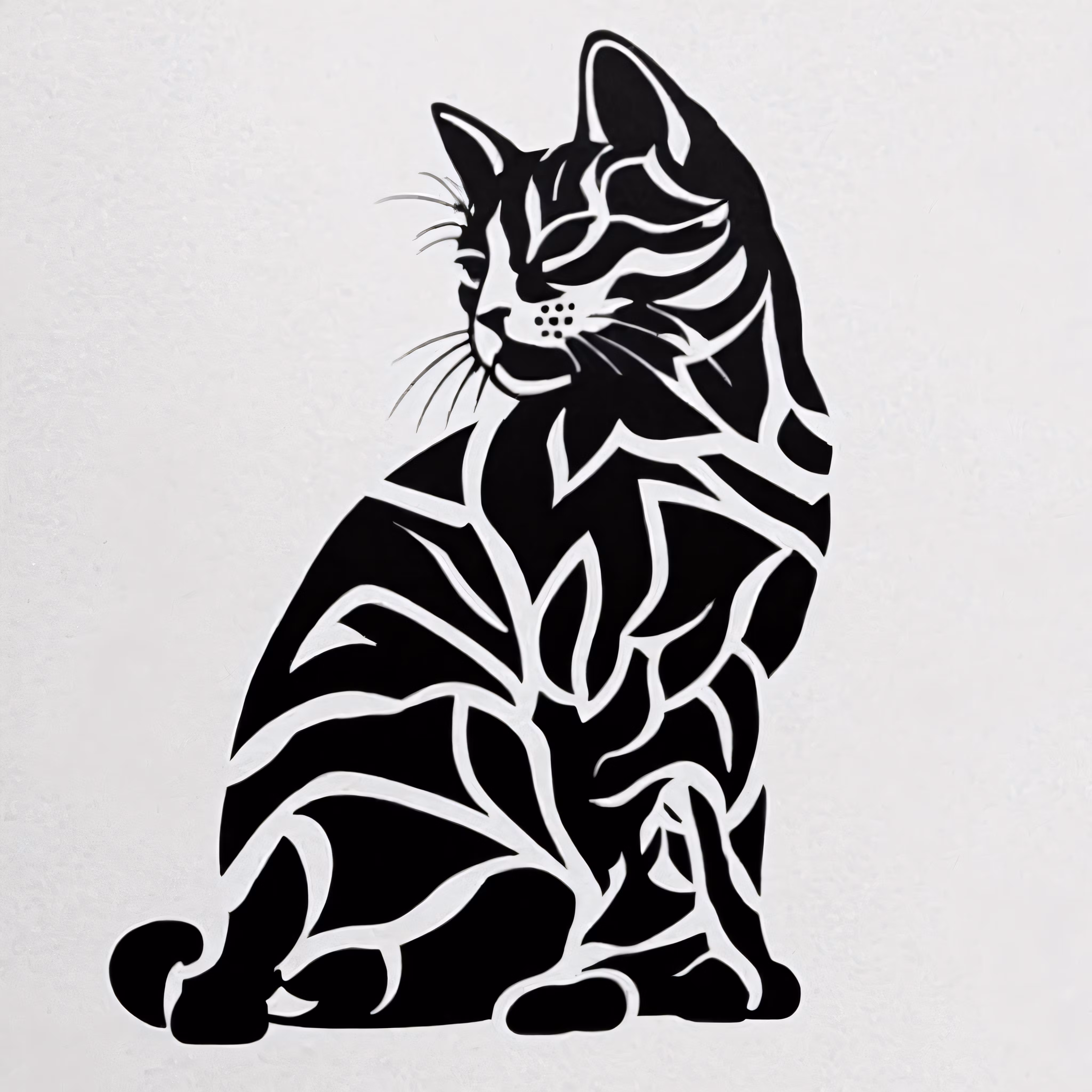 High resolution picture, free to use, an artisticly designed black and white drawing of a cat