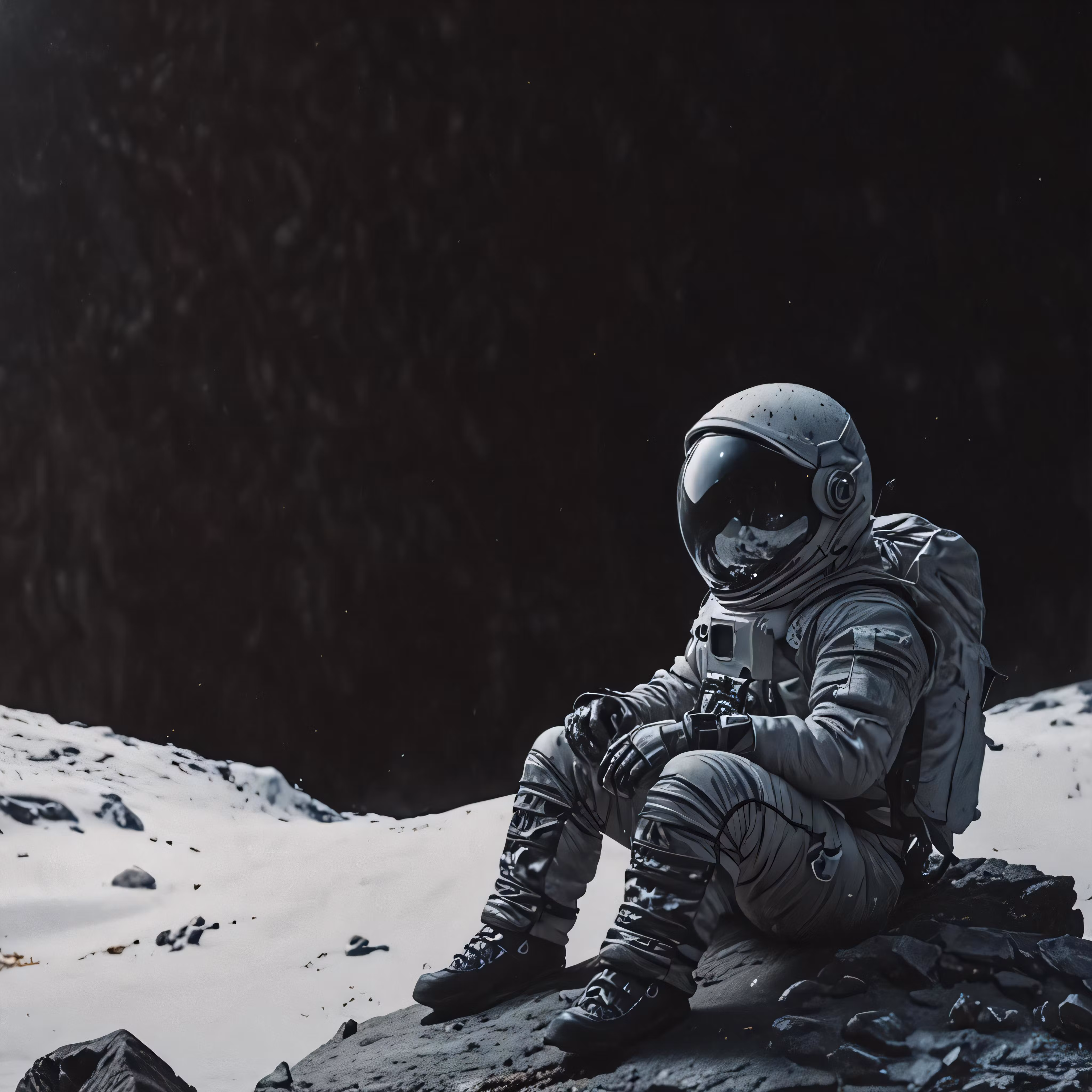 High resolution picture, free to use, an astronaut sitting on the ground while looking at something