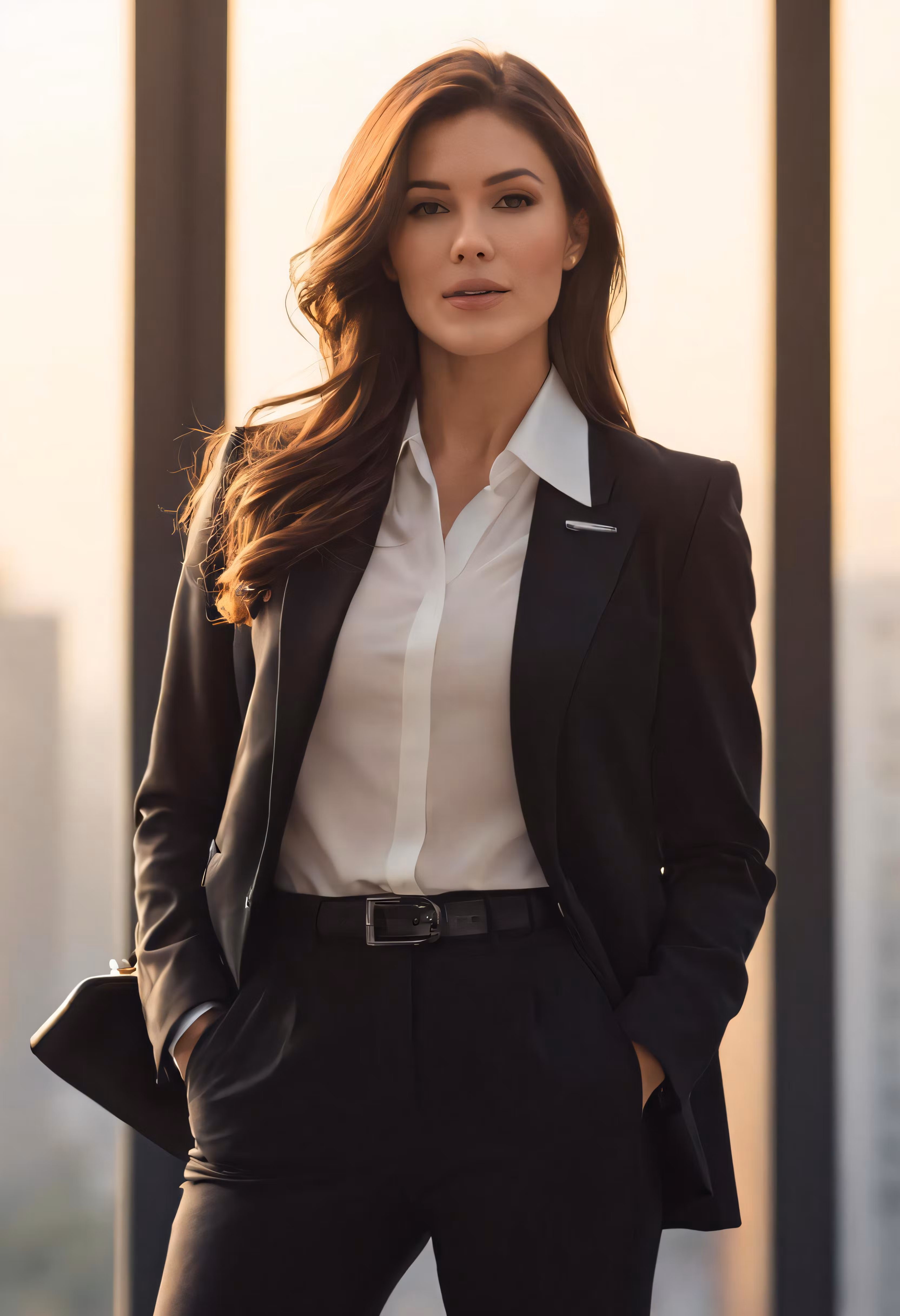 High resolution picture, free to use, an attractive asian woman wearing a black jacket and pants