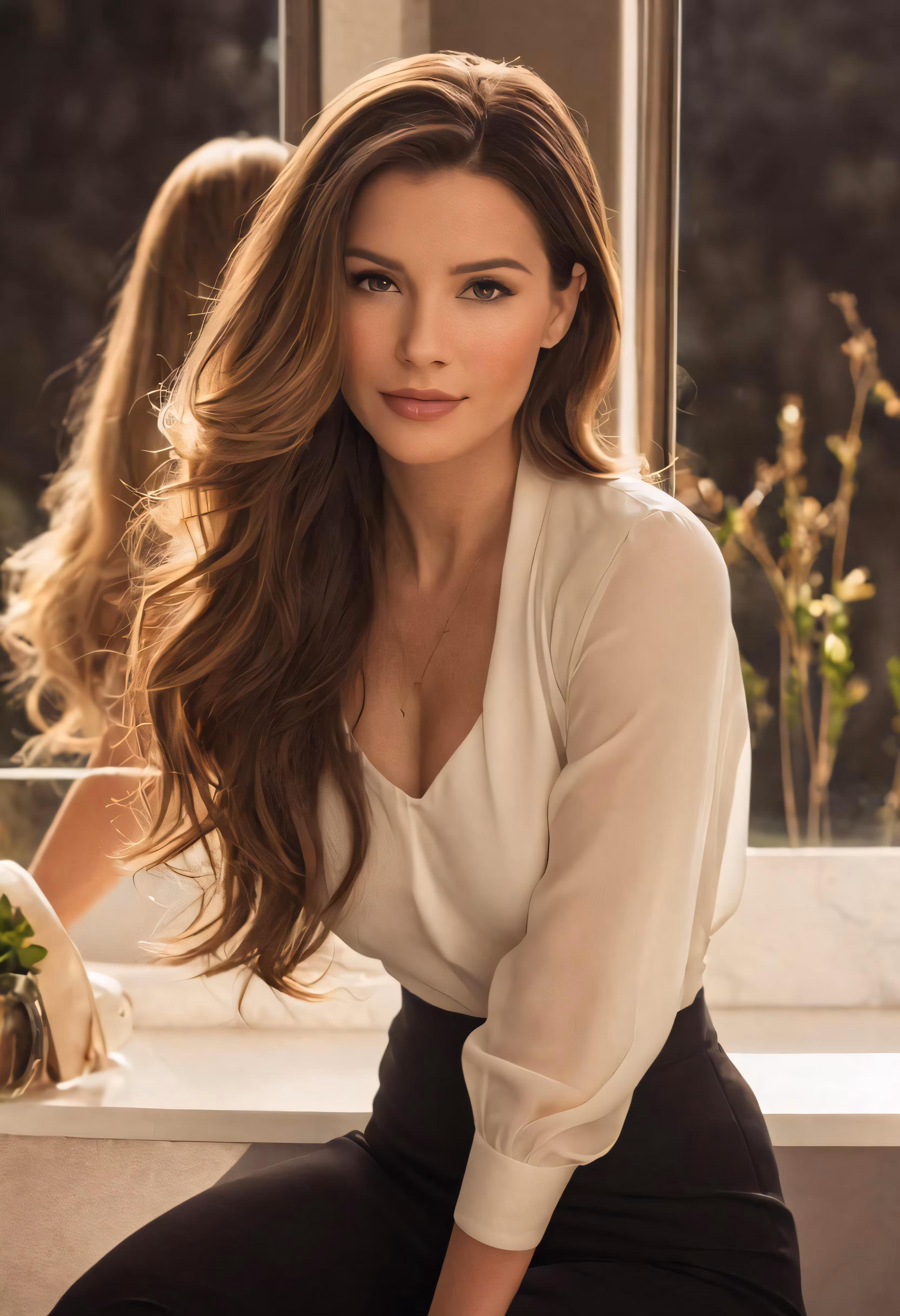 High resolution picture, free to use, an attractive woman in a black and white outfit