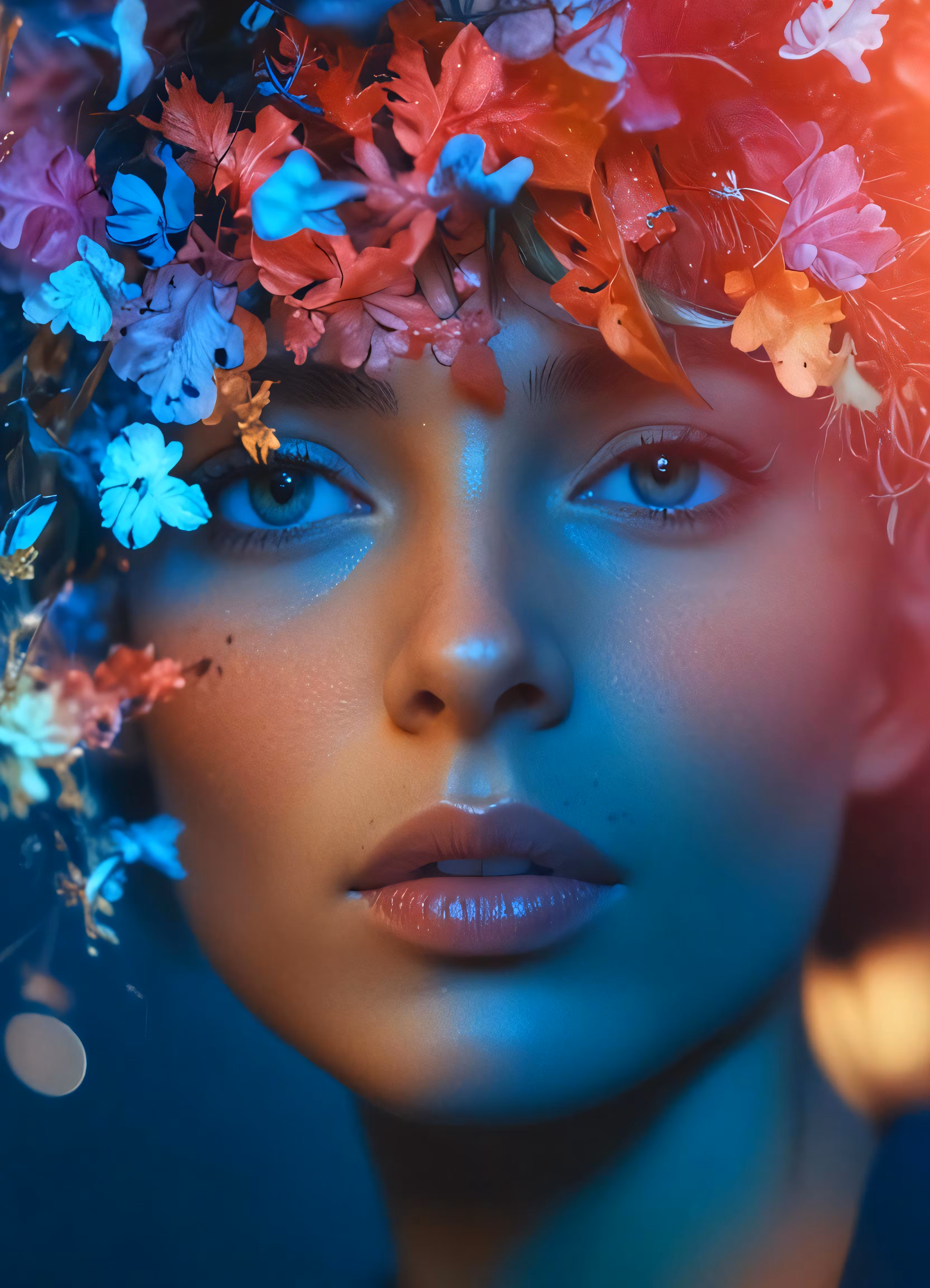 High resolution picture, free to use, an attractive woman with flowers in her hair