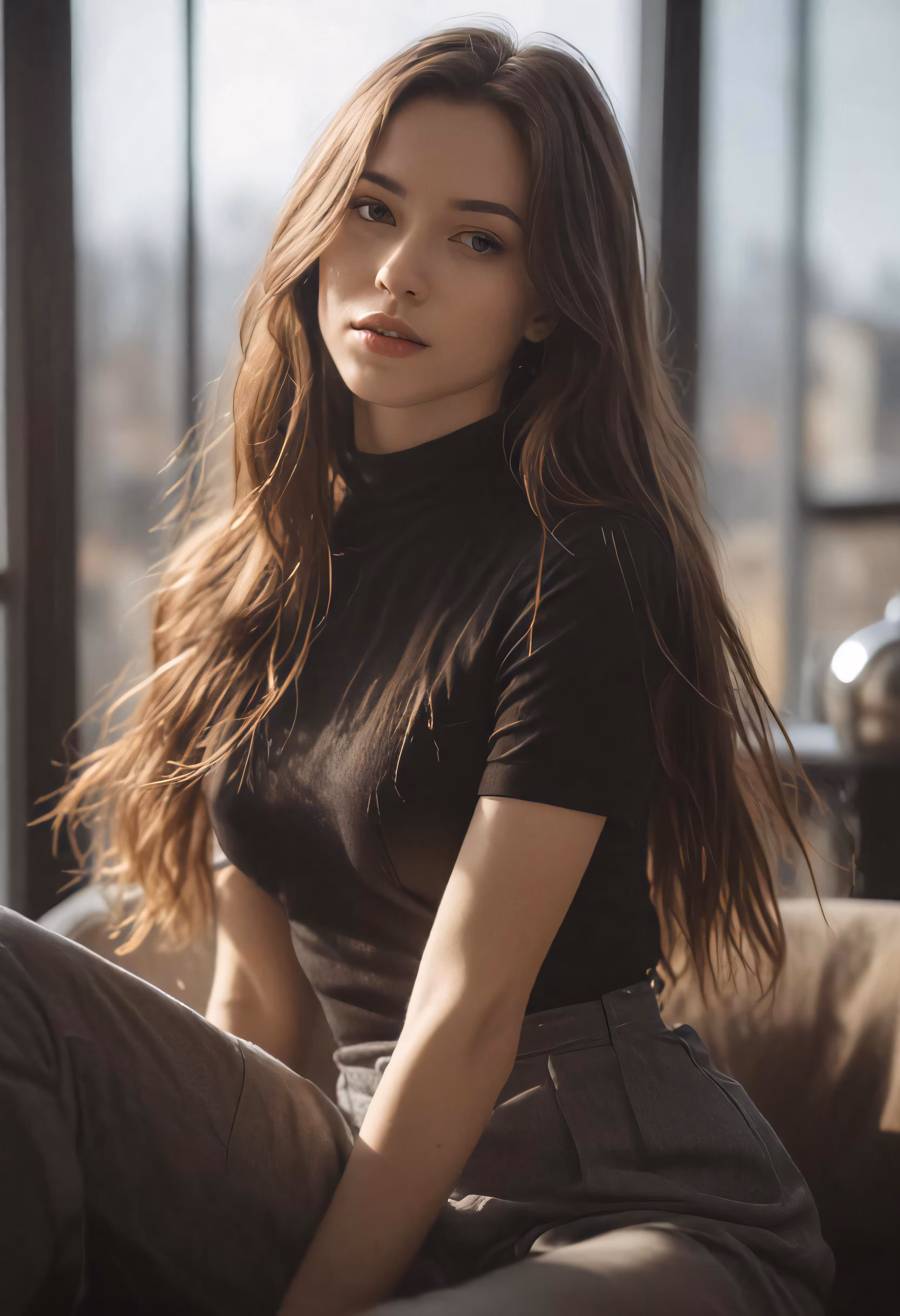 High resolution picture, free to use, an attractive young woman sitting on a couch