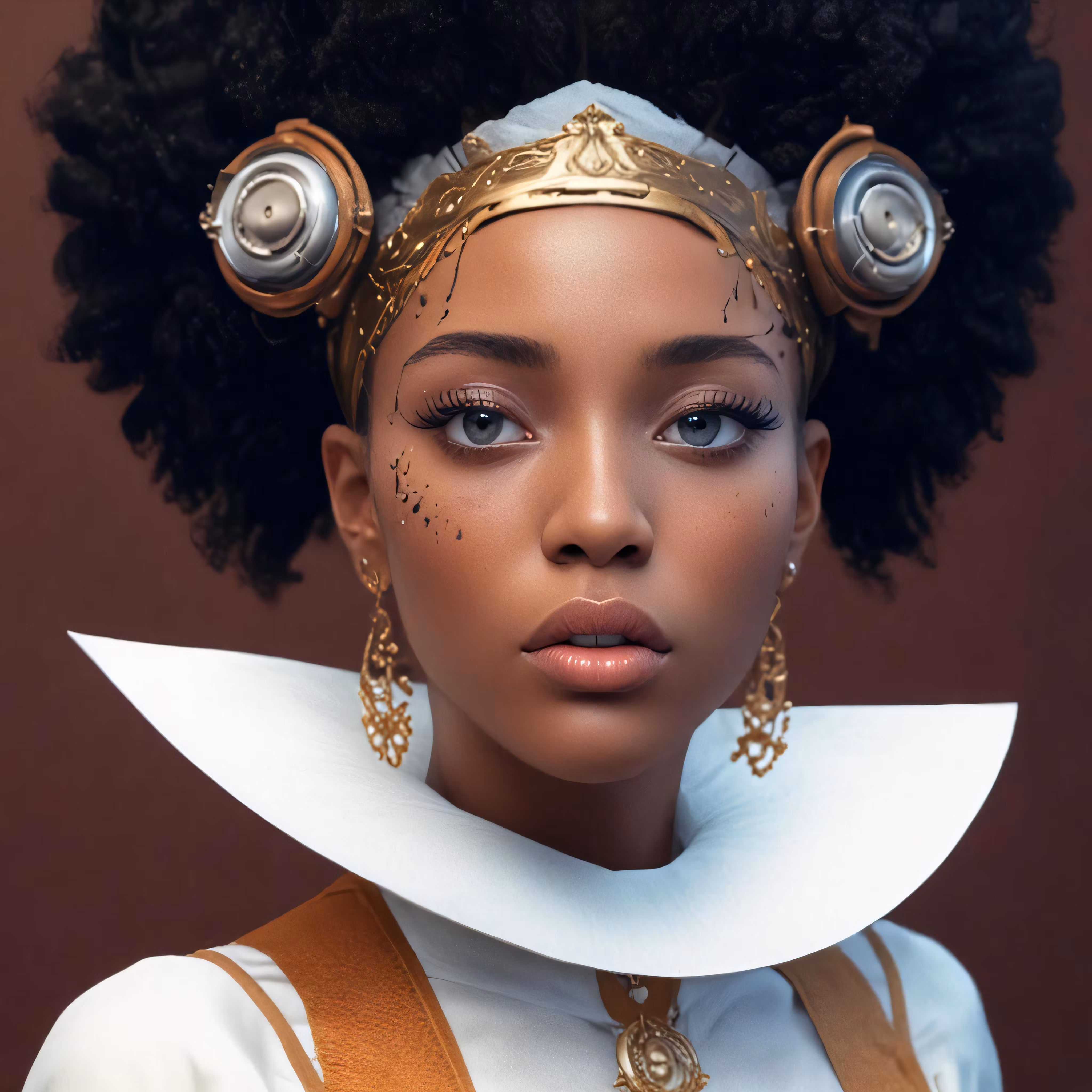 High resolution picture, free to use, an avatar   friendly photo of an african american girl wearing headgear and headpiece