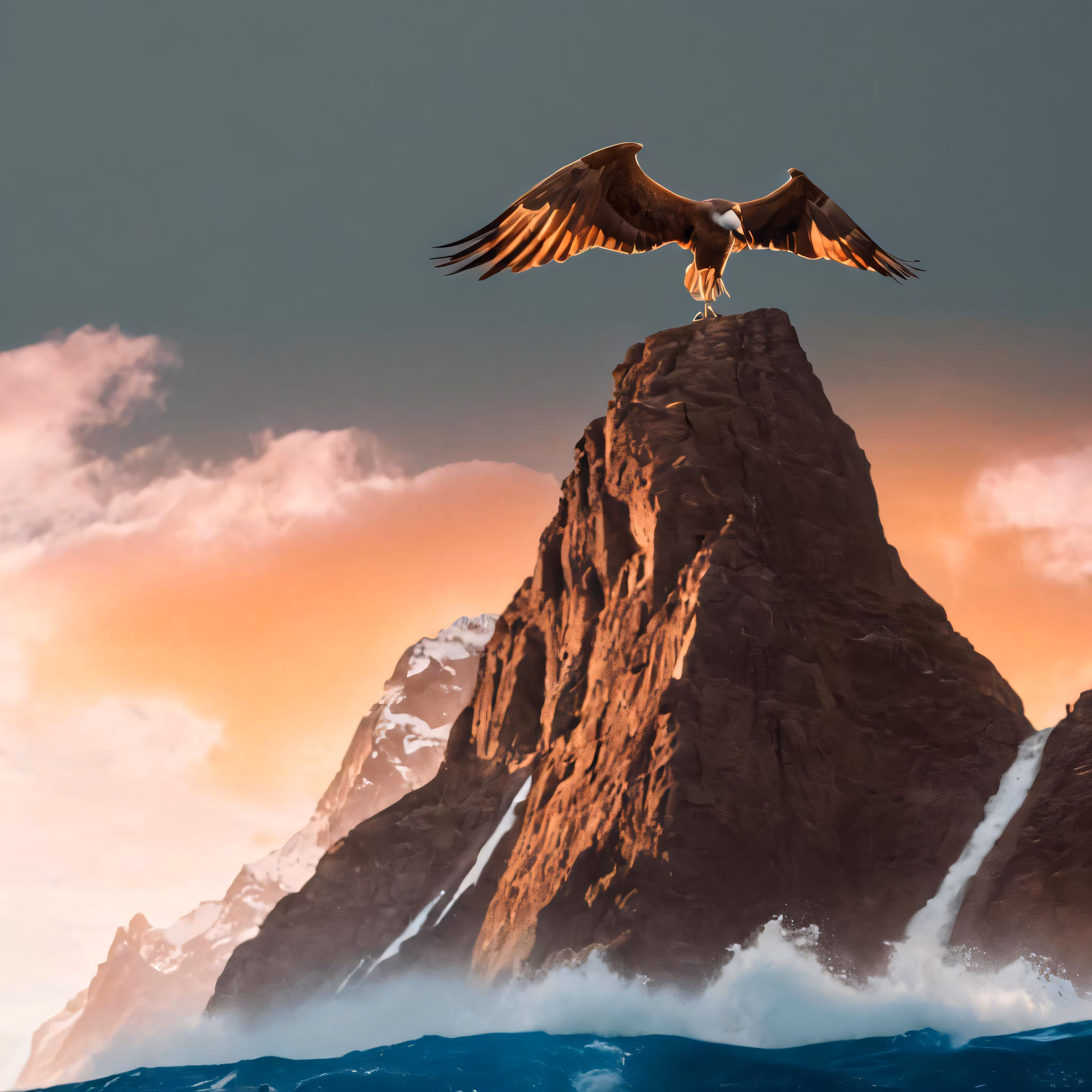 High resolution picture, free to use, an eagle is standing on top of a rocky mountain